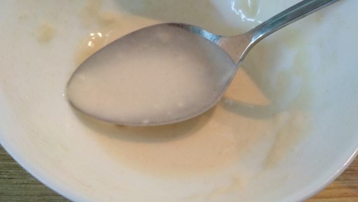 Столовую ложку муки разводим холодной водой, до состояния блинного теста.