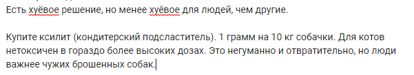 Берегите и вы. Мой коммент могут подтереть по призыву зоошизы (поэтому часть скрином), но вы все-таки запишите себе рецепт, на всякий случай. Пусть лучше не пригодится, чем искать врача в это время и/или лежать в больничке с травмами.