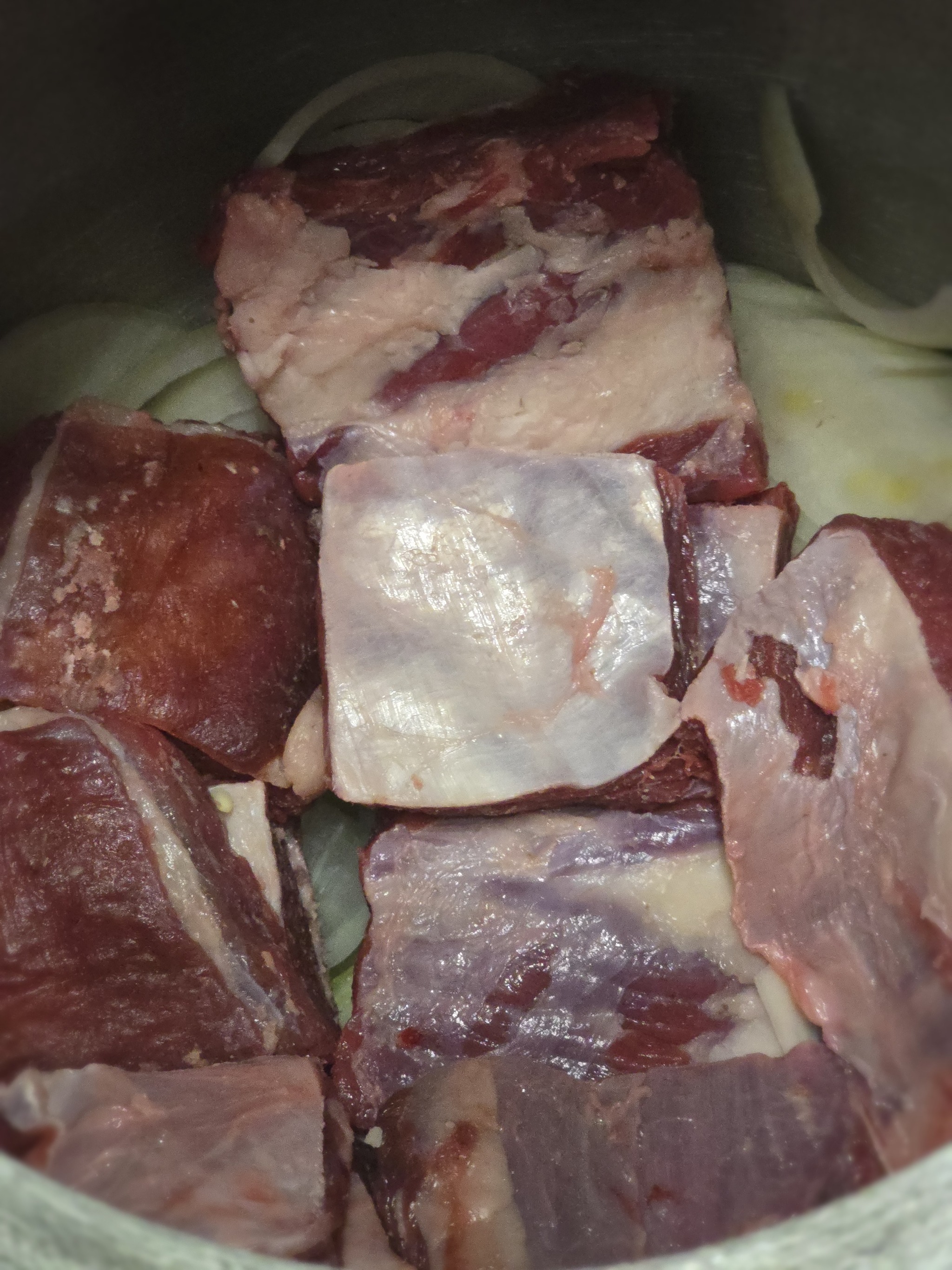 Так как мой казан это ответный подарок (мы дарили друзьям казан другой фирмы и немного другой формы полтора месяца назад), то у нас идёт коллективный поиск идеального для нашей компании рецепта хашламы. Но есть 2 незыблемых правила: