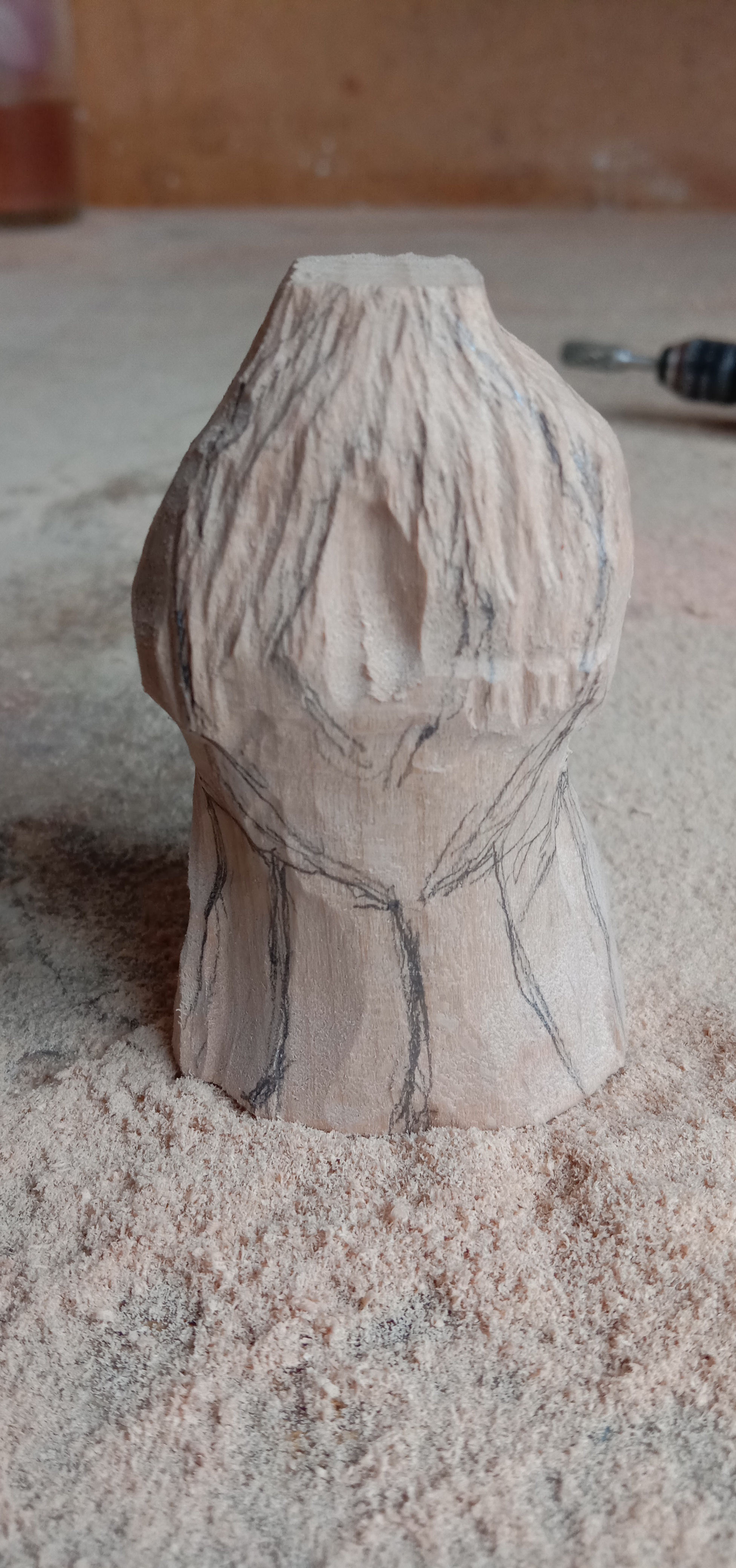 Дальше углубляем ему лицо и обпиливаем по контуру
