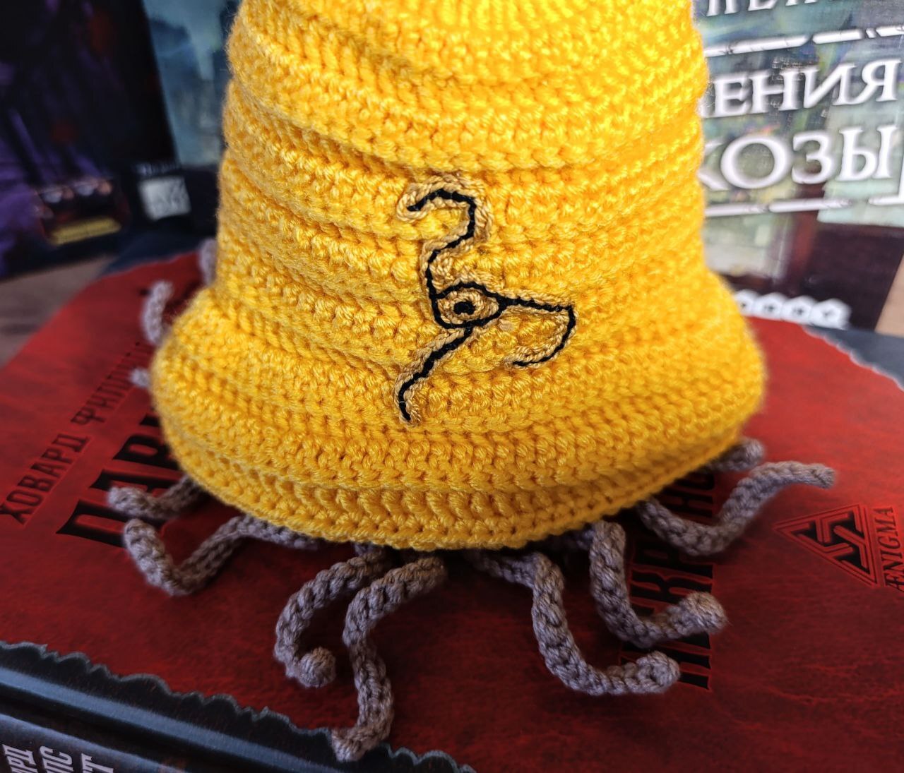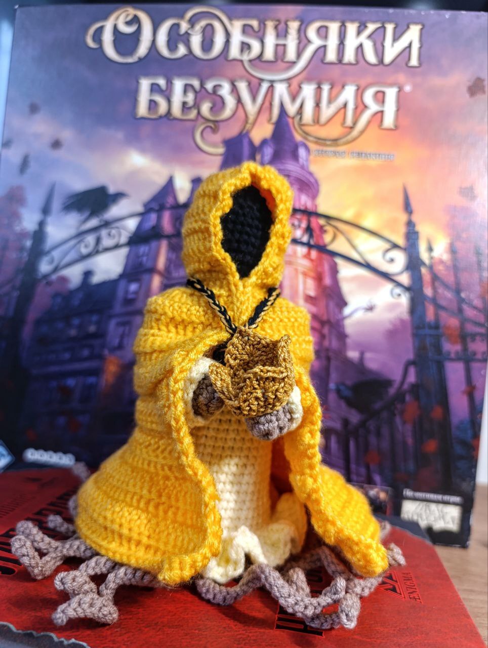 И вот у меня появилась идея: создать вязаного Хастура в подарок мужу (это его любимый персонаж). В поисках похожих работ в интернете, я особо ничего не нашла, схем тем более. Поэтому было принято волевое решение создать все с нуля.