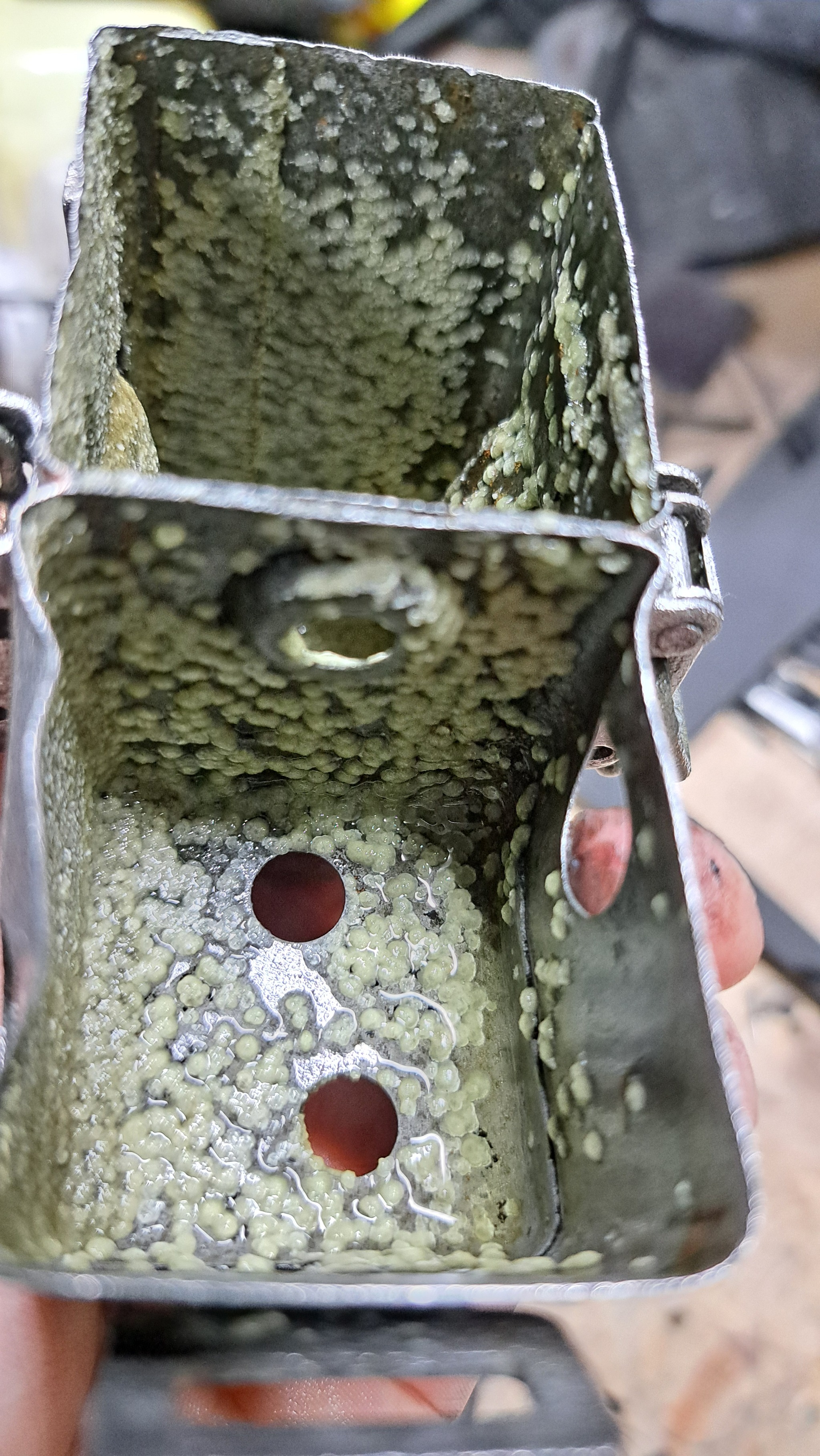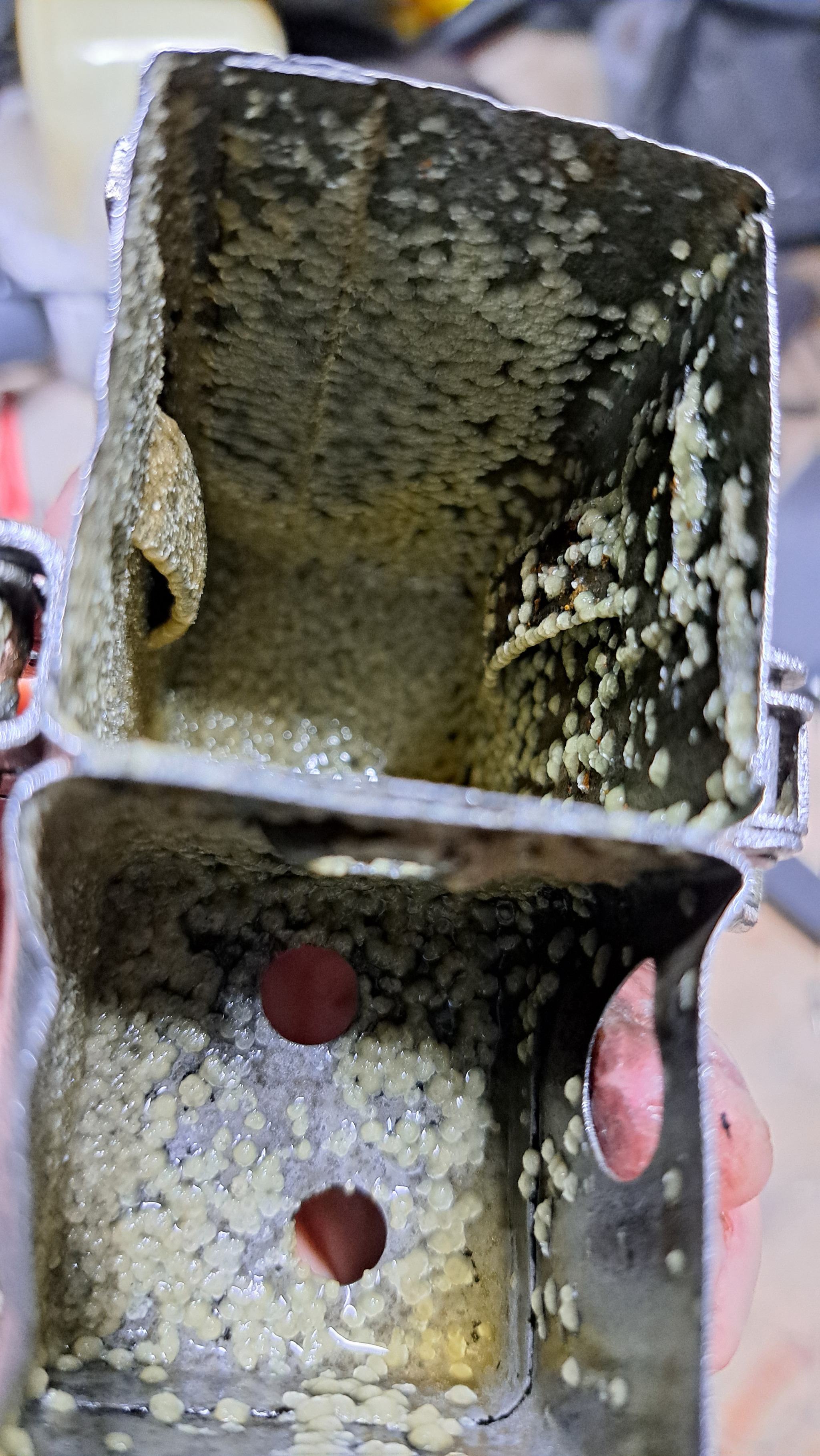 Раньше было все хорошо, три дня деталь квасилась, но сегодня утром я увидел как все покрылось большим количеством налёта, он счищается щеткой, но в воде кажется не растворяется.