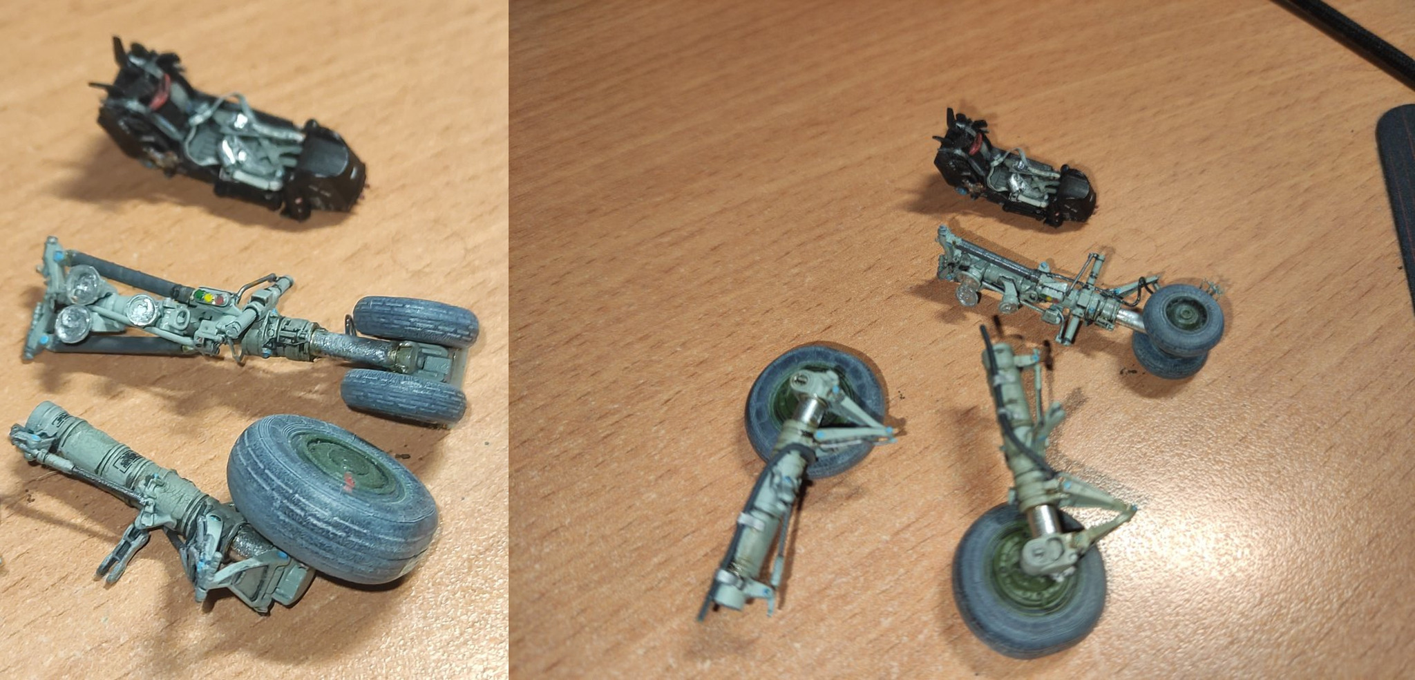 Комплектация у модели отличная, куча технички, три платы травления, очень удачные сопла в двух вариантах, маркировка трёх бортов 68, 86 и 80, отдельные коробочки с ракетами(отлитыми целиком) в общем загляденье. Так же варианты исполнения со сложенными крыльями и нет. Мои полки решили, что лучше со сложенными, так как сама модель в масштабе 48 просто громадина.