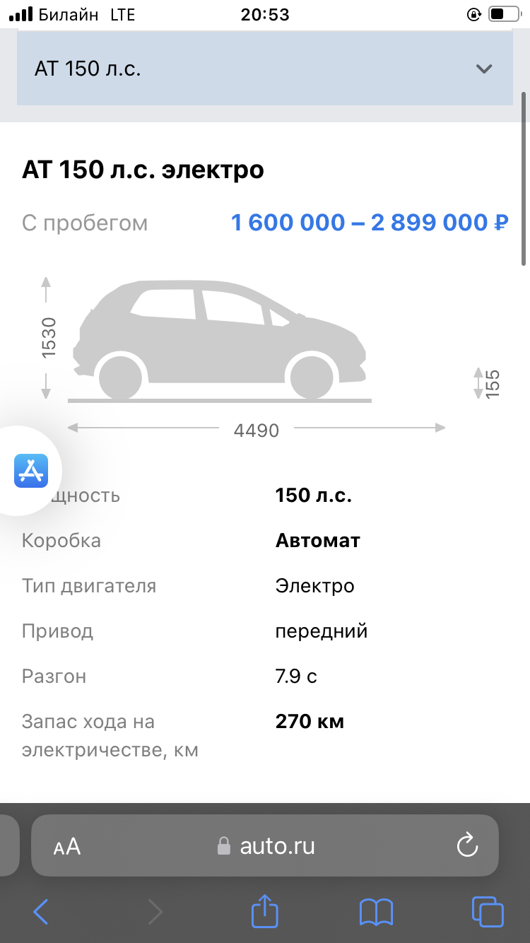 Хит-парад б\у электромобилей в России до 2,5 млн. рублей