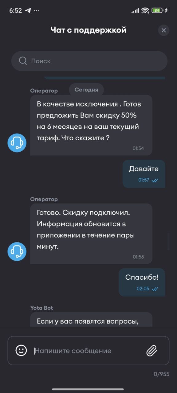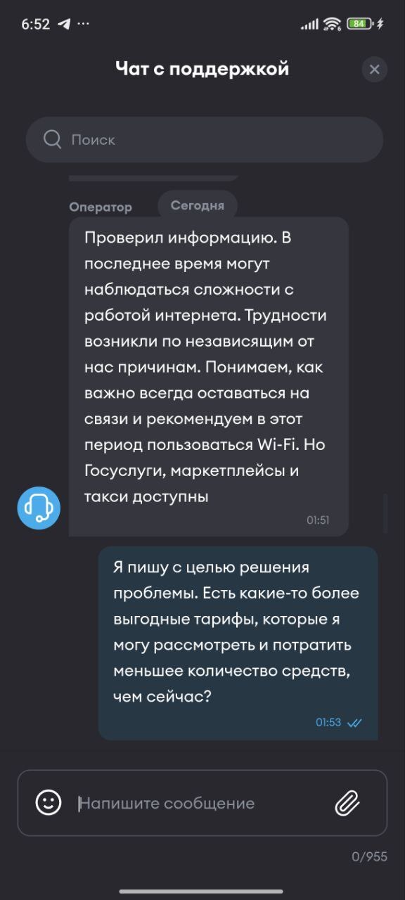 А если пользователь предложит приложить видео с доказательствами обратного ("При переходе в раздел изменения тарифа всегда будет отображаться 100 минут и 50 ГБ для примера"), то помните, это невозможно (если это всё же возможно, срочно фиксите чат, чтобы нельзя было приложить видео).