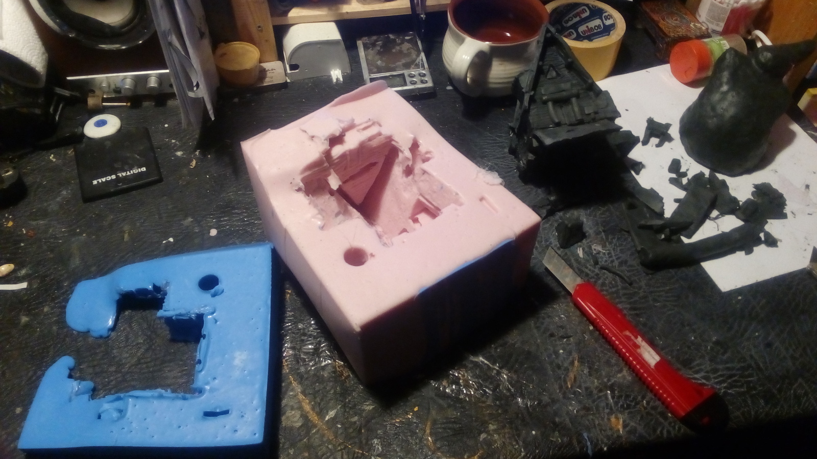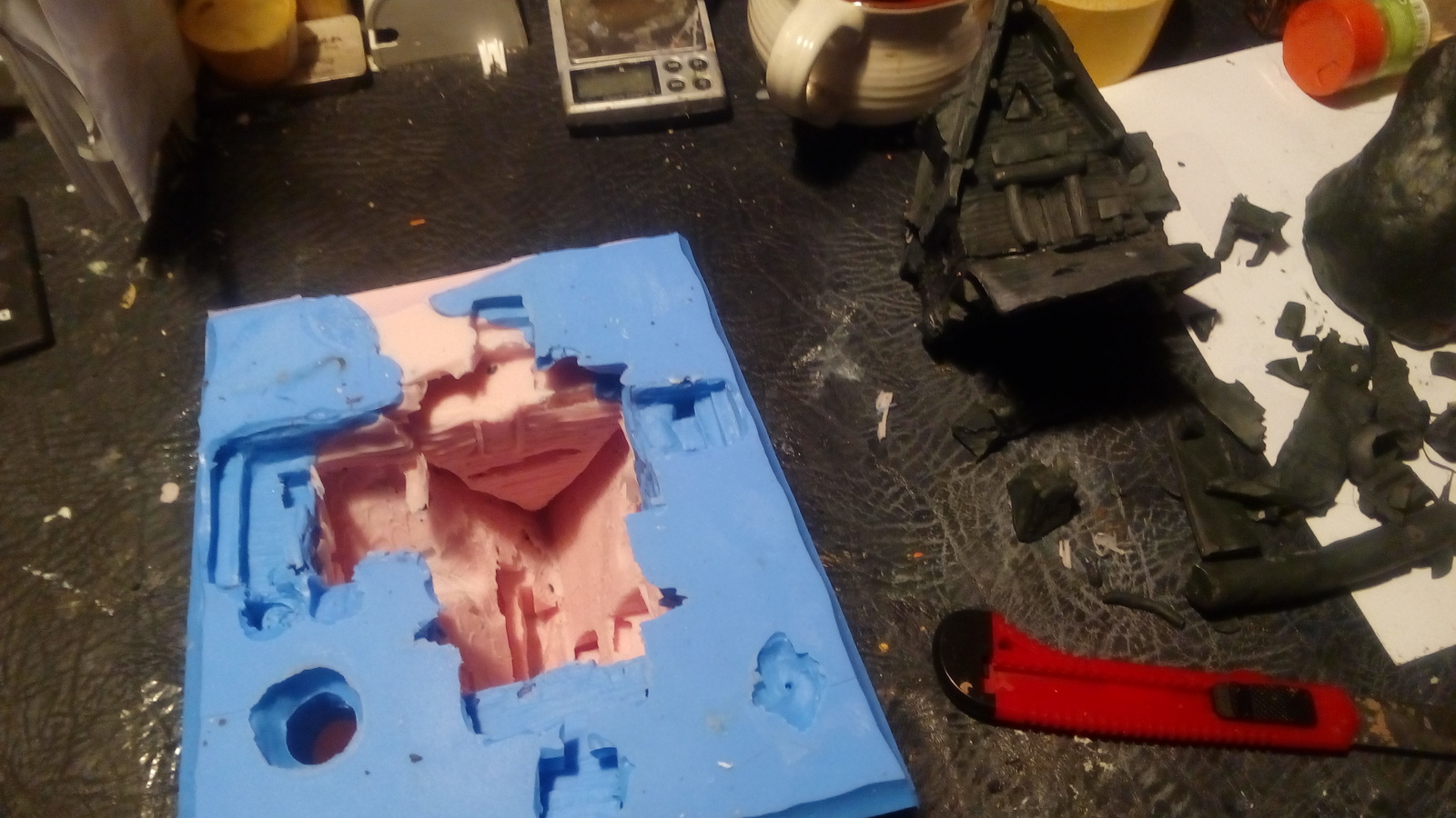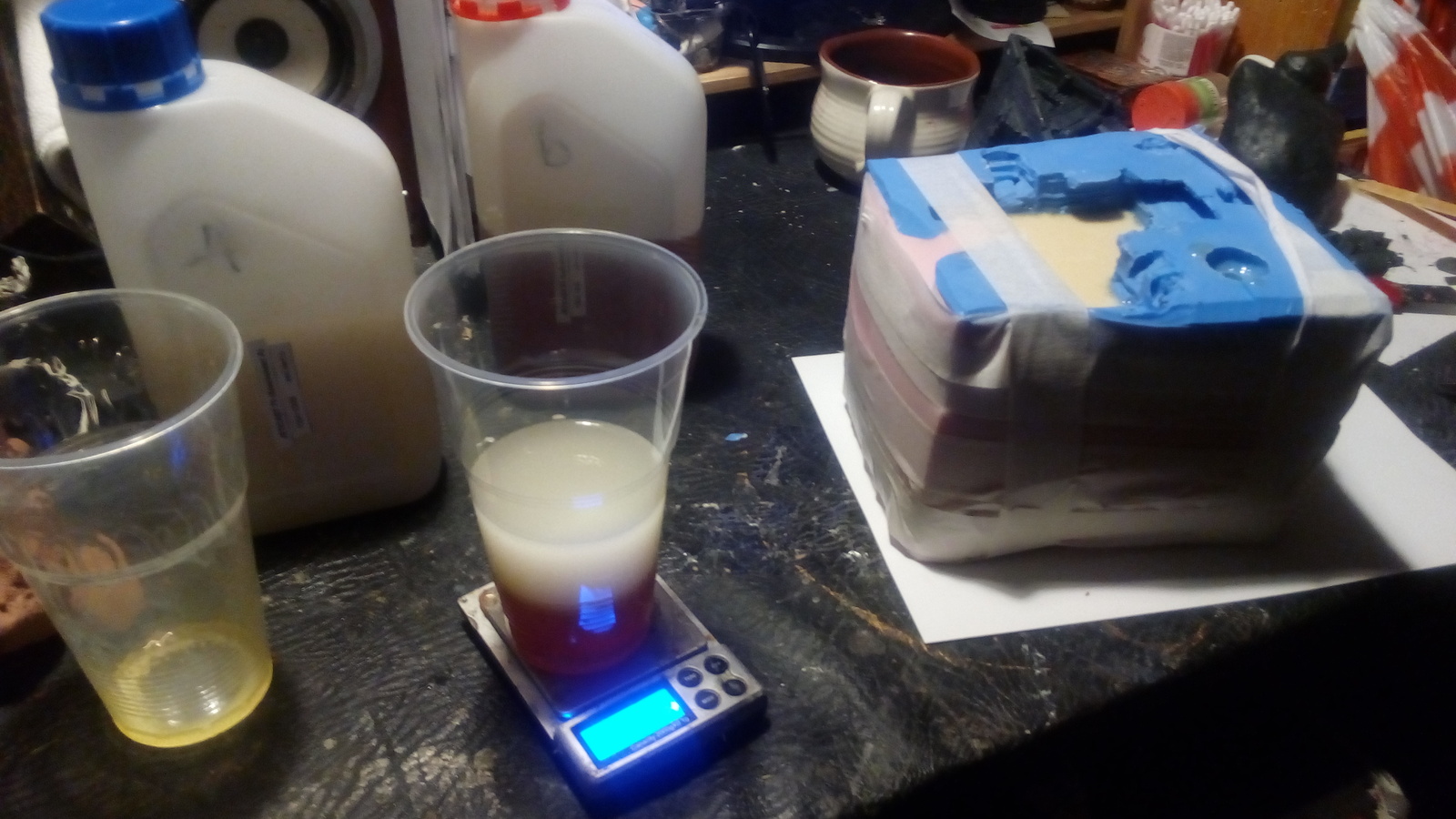 Форма стягивается скочем, обрабатывается восковым разделителем и можно заливать.