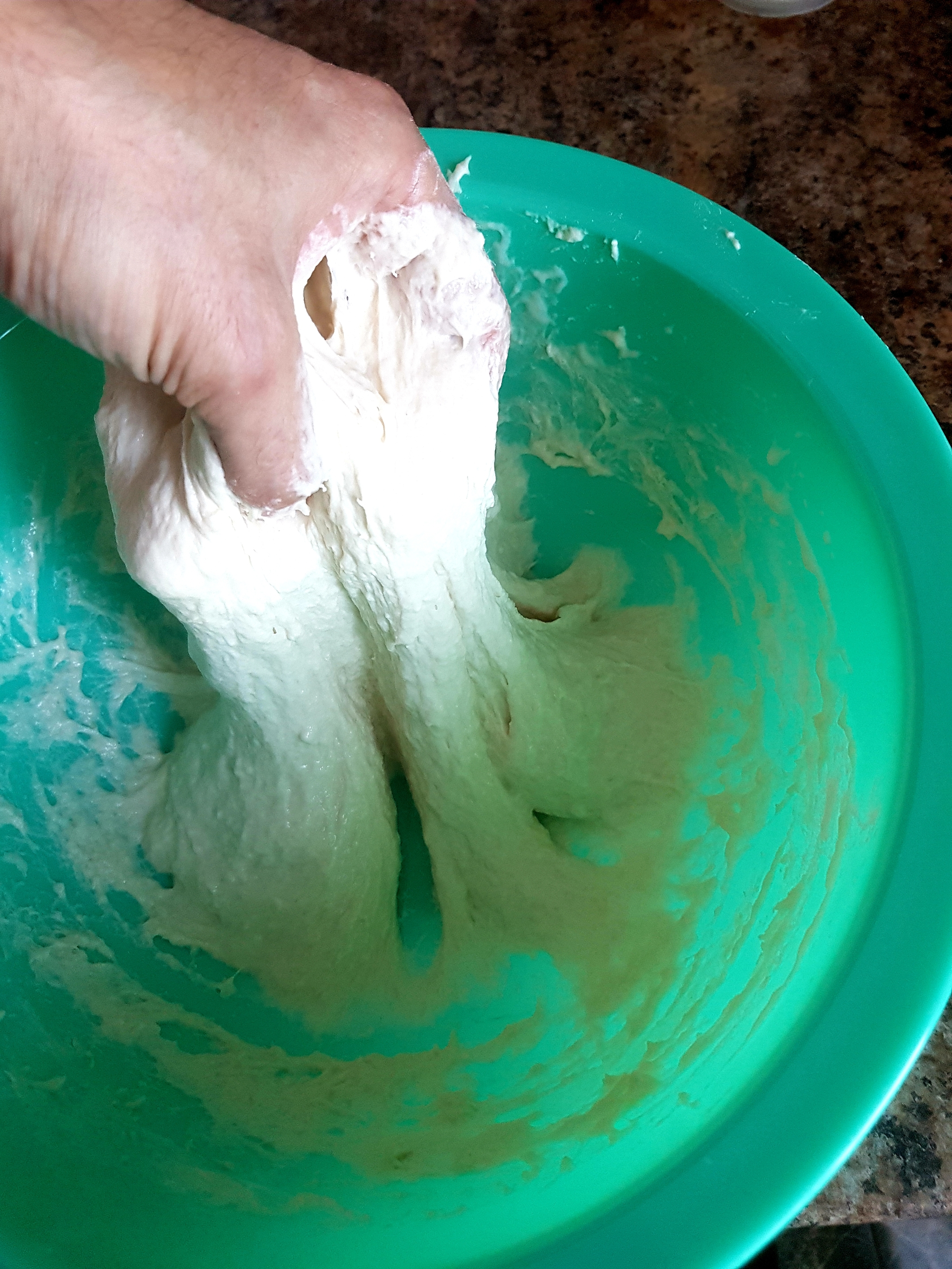 Заметил тесто и понял, что никакую форму оно не примет. Слишком мало муки.