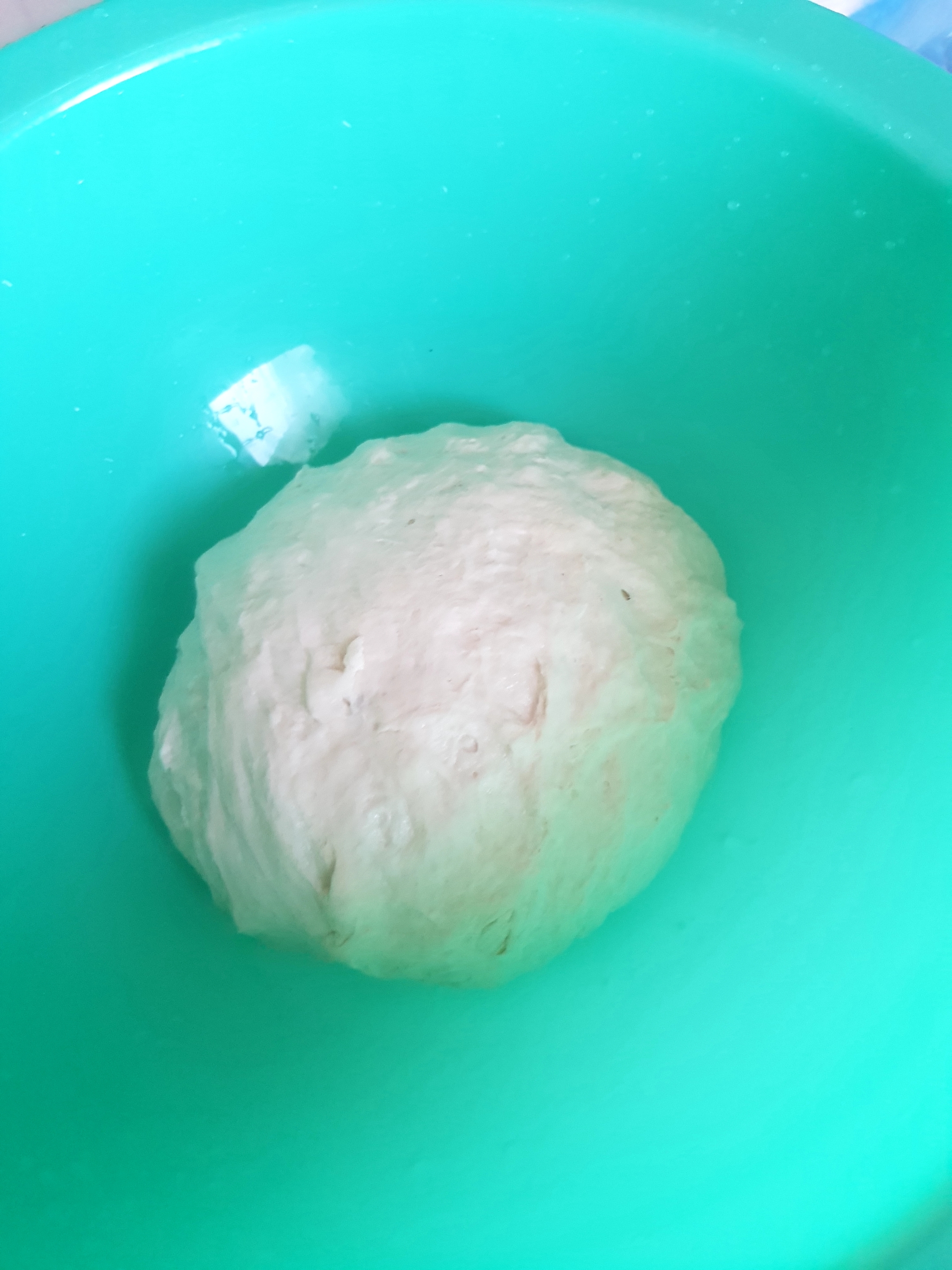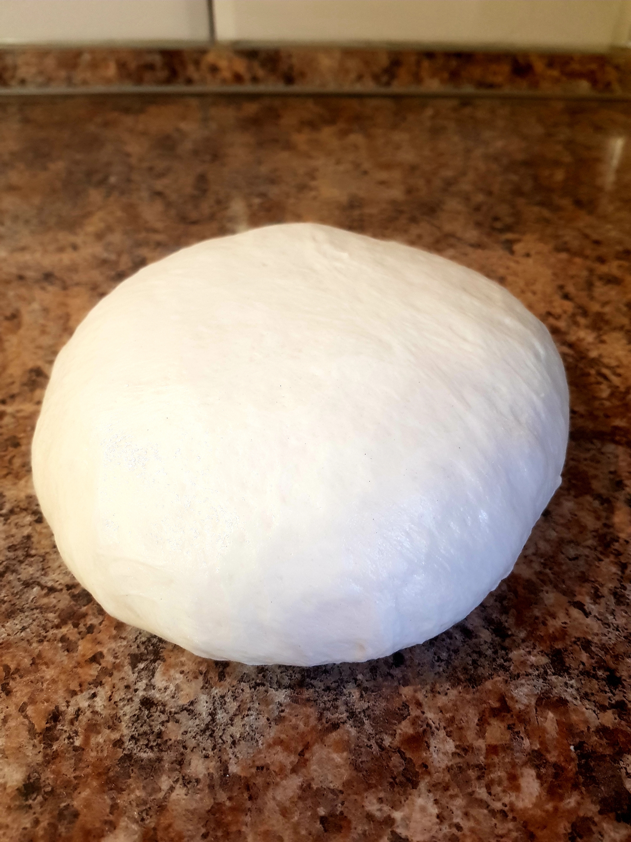 Когда тесто поднялось во второй раз, снова обмял его, достал из тазика и сделал подкатку.