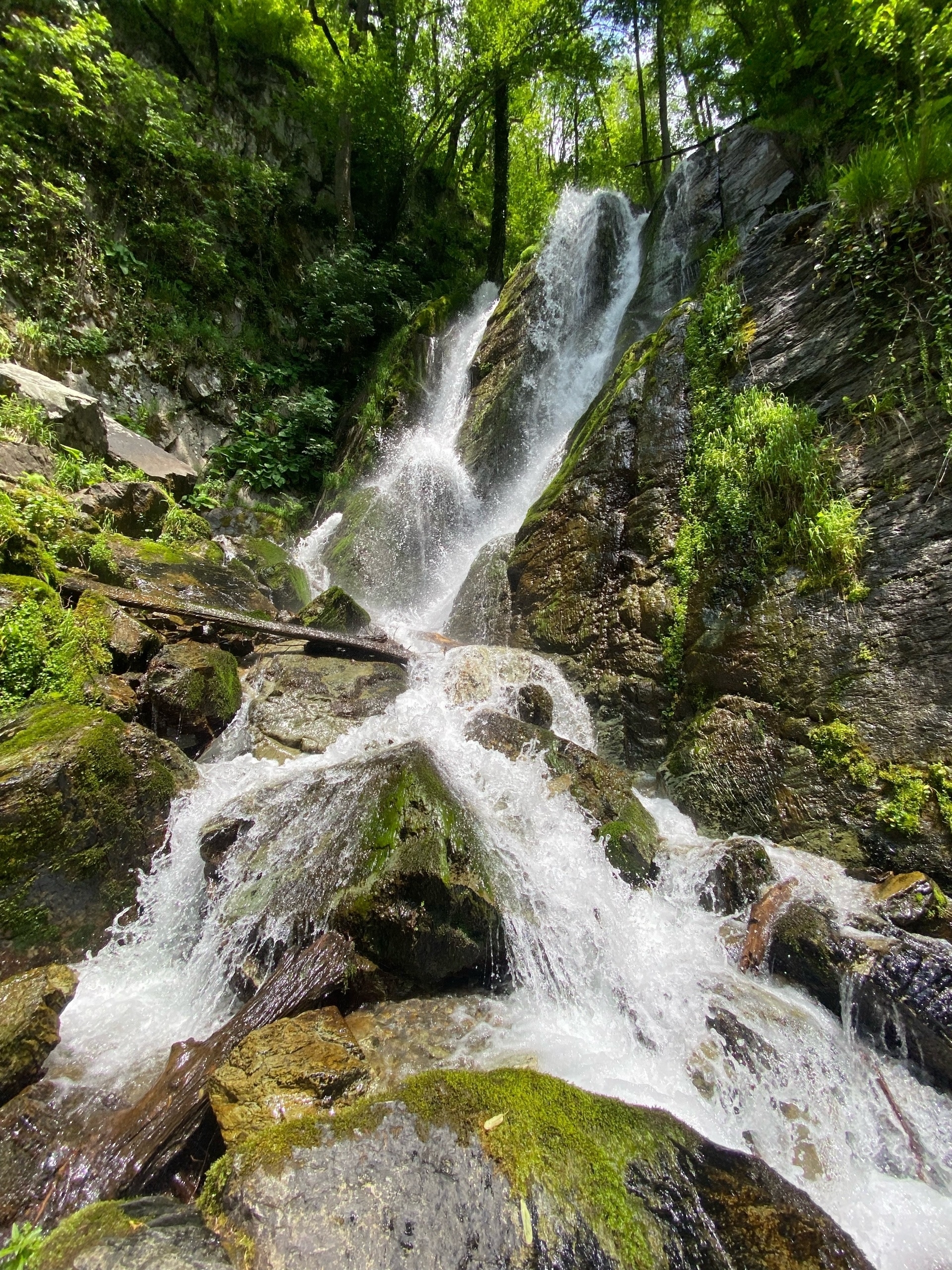 Водопад был полноводный, красивый. Тропа идет по лесу.