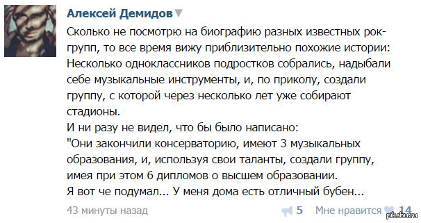 Мало групп перечитал он явно. Мне известна как минимум группа Deep Purple, основатели которой имели хорошее музыкальное образование и не только музыкальное.