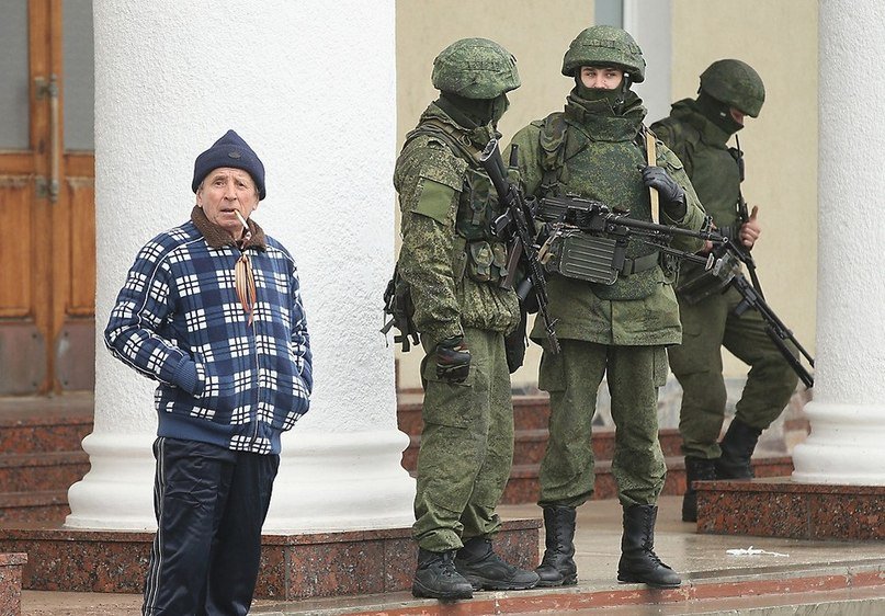 Ребята я с Крыма.Конечно же всем интересно, что это за "Вежливые люди" гуляют у нас по Крыму, дышат свежим воздухом. Несмотря на то, что на них нет знаков различия, рассказываем всем Крымчанам.... Вежливые люди носят камуляж в расцветке "ЕМР ЛЕТО" - официальной расцветке Вооруженных сил Российской Федерации. На них шлемы 6Б7 и 6Б27, стоящие на вооружении в Российской Федерации. В руках у них автоматы калашникова, снайперские винтовки Драгунова и ручные пулеметы ПКП. Все это - стрелковое оружие, характерное для РФ. Особенно ПКП. Если СВД и АК - могут быть как в Украинской армии, так и в российской, то ПКП поставили на вооружение совсем недавно, вместо пулемета ПКМ. Угадайте в какой стране? Вежливые люди носят станадртные разгрузки 6Ш112, бронежилеты 6Б23. Это общевойсковые системы Российской армии. В общем, вы еще сомневаетесь кто это такие? Конечно же это ОТРЯДЫ САМООБОРОНЫ КРЫМА! Еще вопросы? Они к стати, не захватывали и не блокировали никакие объекты, как кричат по всем СМИ. Они просто гуляют. Перед воинскими частями, аэропортами, аэродромами... И в иных ключевых объектов. По крайней мере так было до наступления темноты. При этом Вежливые люди из Отрядов САМООБОРОН КРЫМА не препятствуют деятельности объектов мимо которых гуляют. Обратите внимание на дисциплину самооборонщиков, во избежании провокаций - магазины на оружии у них отомкнуты.Всё нормально,мы мирные протестующие)