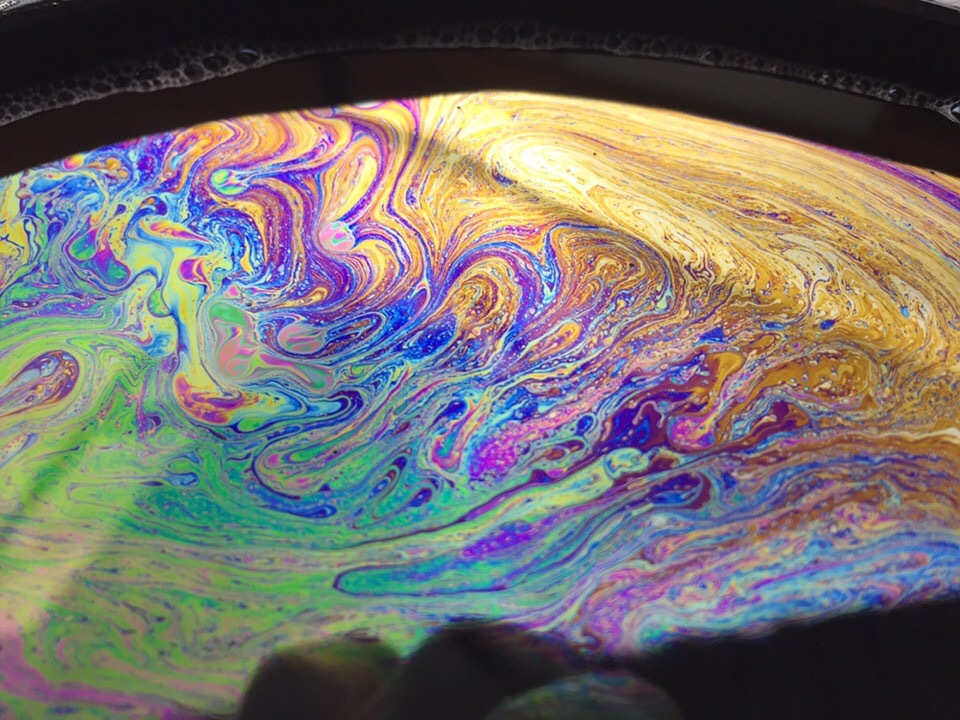 Позже смонтирую видео, как в реальном времени пузырь меняет цвет и переливается.