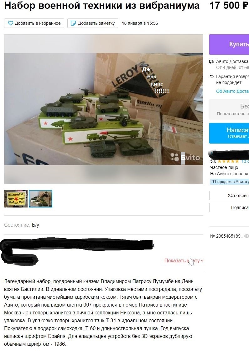 5 crooogen 3 года назад Хочешь стать мстителем? Пожалуйста! Вот такое на просторах самого честного сайта частных объявлений. А почему нет, если да? Смешные объявления Военная техника Игрушки Вибраниум Коллекция Ещё 0