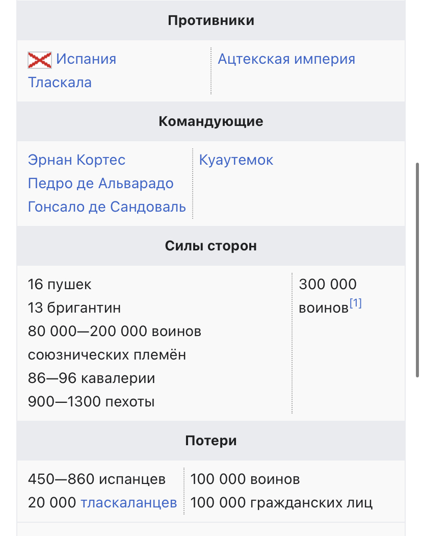 Давайте глянем на результат боя за Теночтитлан: