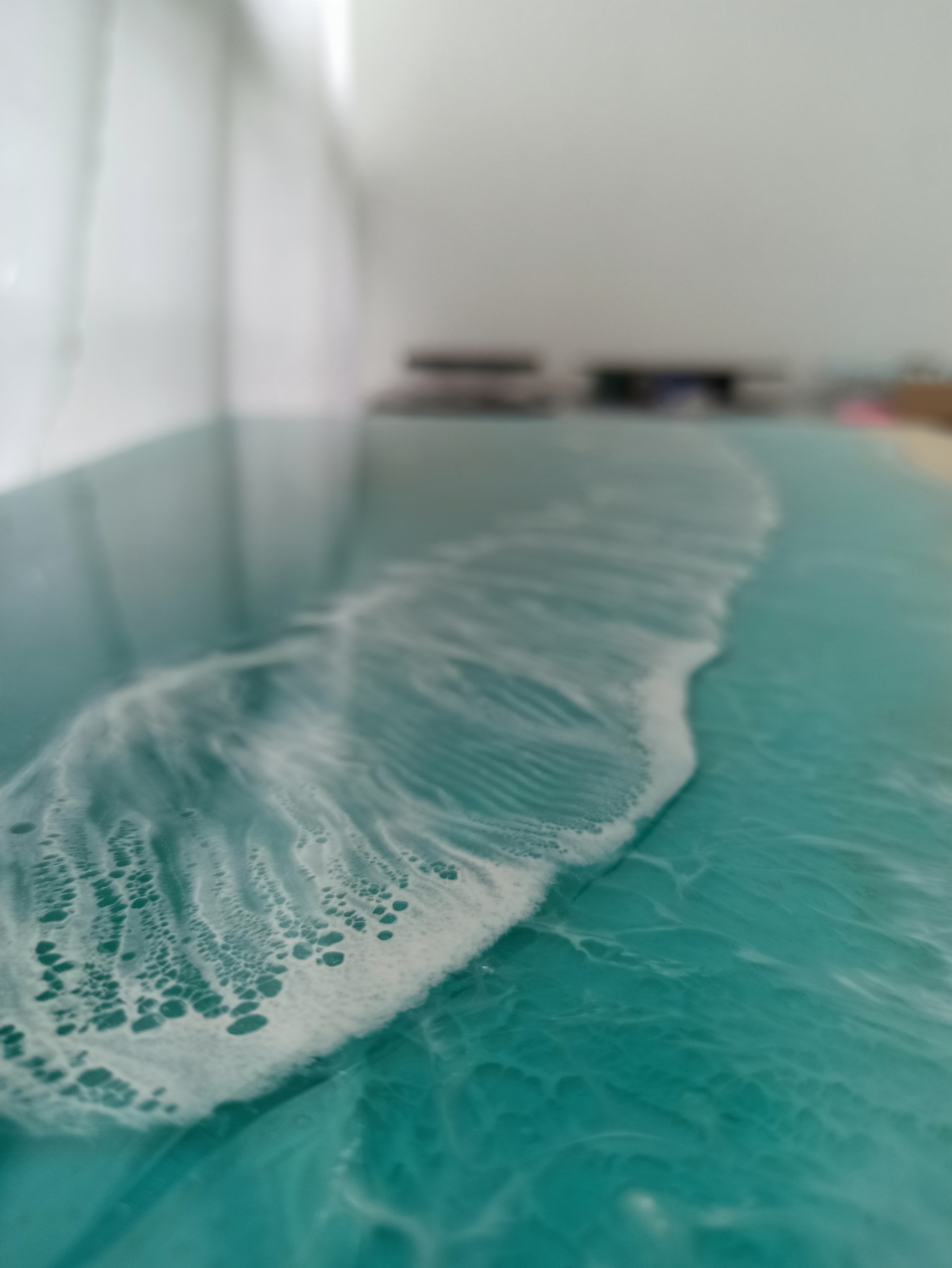 По мере застывания рисунок может меняться. Это зависит от густоты смолы и наличия бортов у борда.