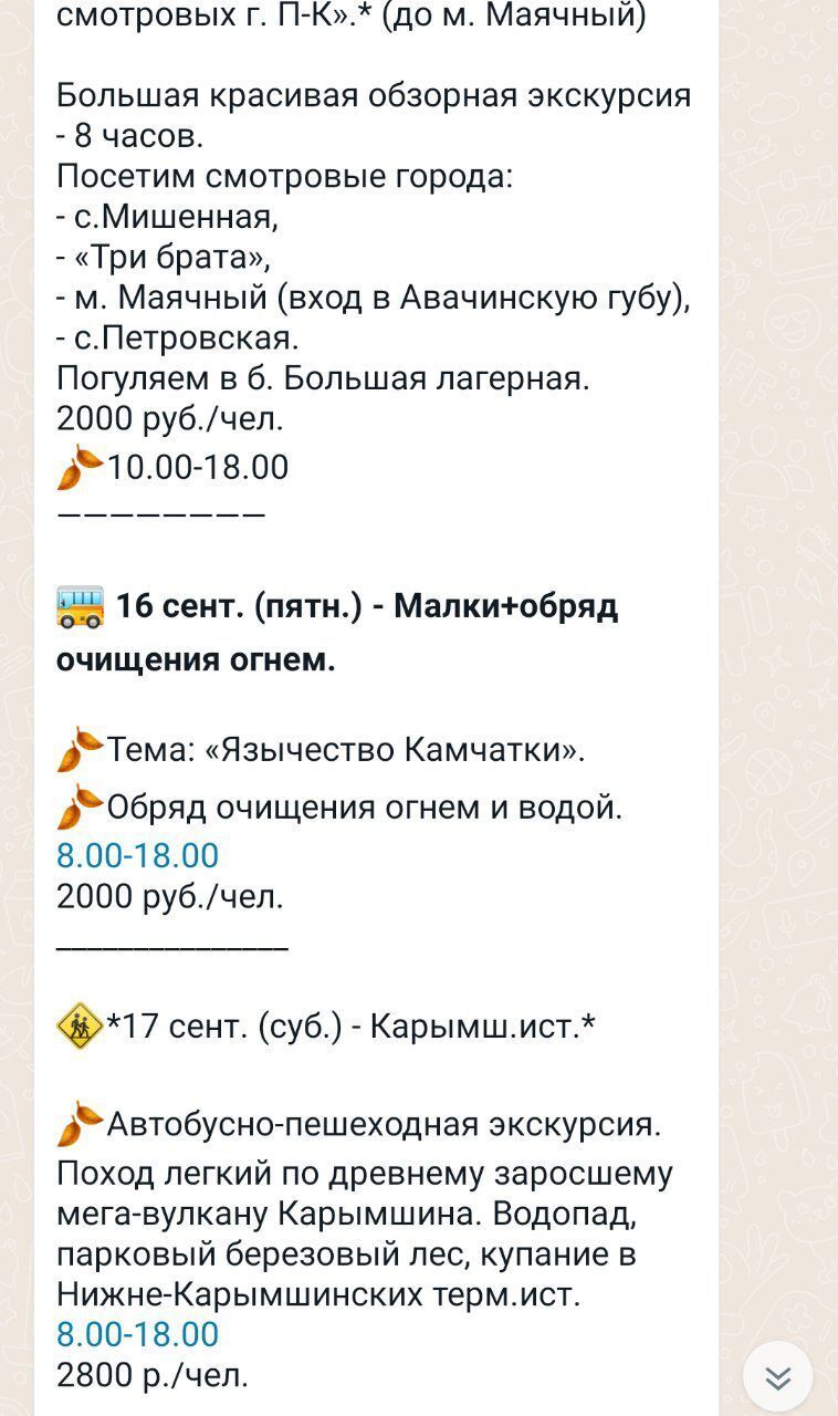 Живу в Тюмени, до этого хотела в Калининград, поехала года через 2-2,5 от начала по очень дешёвым билетам. В этот раз хочу воплотить хотелку быстрее, этим летом желательно. Полечу одна скорее всего, из за финансов. До этого одна не путешествовала, только с детьми или мужем. Какой бюджет нужно планировать на неделю примерно? 100 тр хватит? Думаю успею за это время посетить вулкан и пляж Тихого океана. Билеты начала мониторить, сложная дорога: поезд, самолёт, автобус - не пугает если будет оправдана финансово. Какие турфирмы хорошие? И какие экскурсии точно стоит посетить? Буду пока читать информацию обо всем и искать попутчиков мой телеграм @L05021984