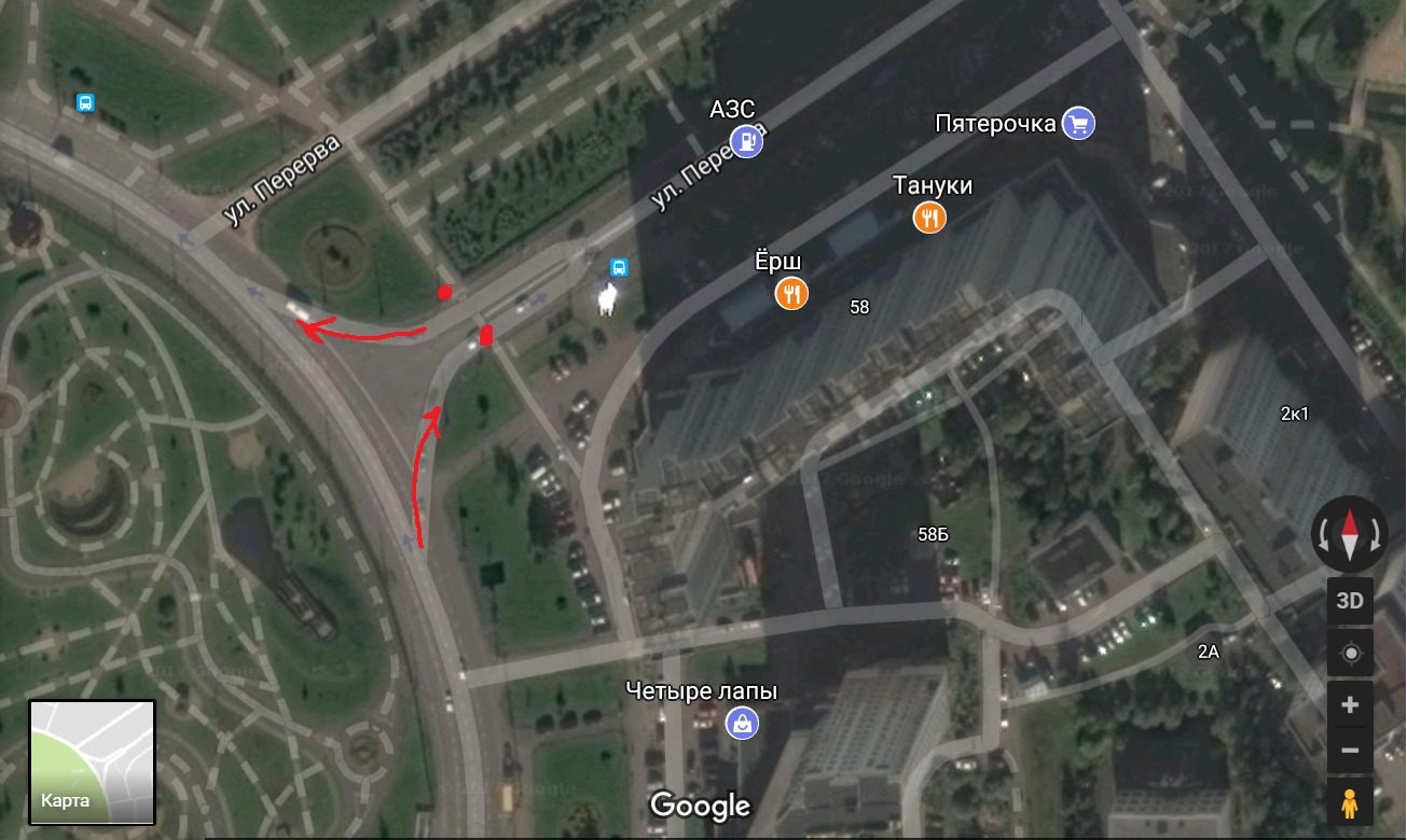 В месте, обозначенным красным цветом, на мой взгляд, было бы неплохо впиндюрить светофор. Потому что движение на участке вообще не прекращается и пройти там проблематично на другую сторону дороги.