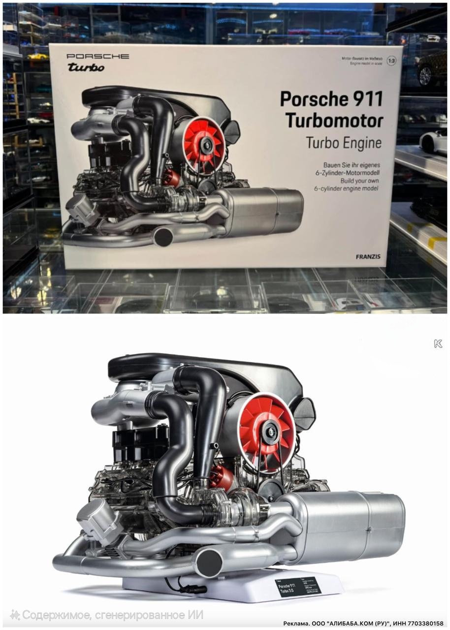 Настоящая игрушка для взрослых мужиков. Немецкая компания Franzis выпустила масштабную копию двигателя Porsche 911 Turbo. Набор спроектирован по архивным чертежам и состоит из 250 деталей. Корпус прозрачный, за счет этого можно увидеть как работают механизмы. Свечи зажигания со светодиодами, которые загораются в нужный момент, имитируя работу двигателя. Сборка занимает примерно четыре часа.