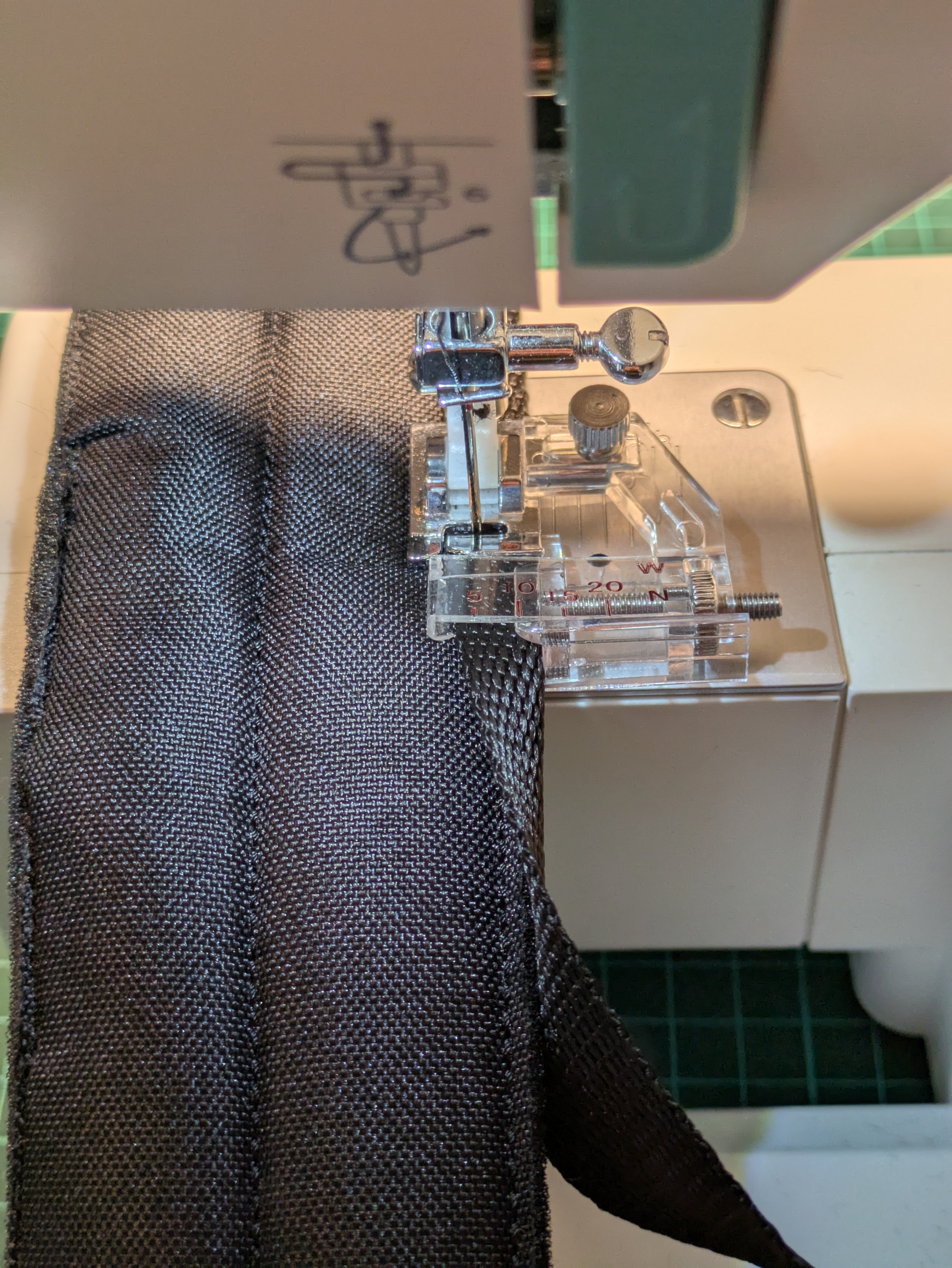 Для окантовки взял лапку для косой бейки, чуток доработал краешки (отломал где было очень узко) и пошло поехало.