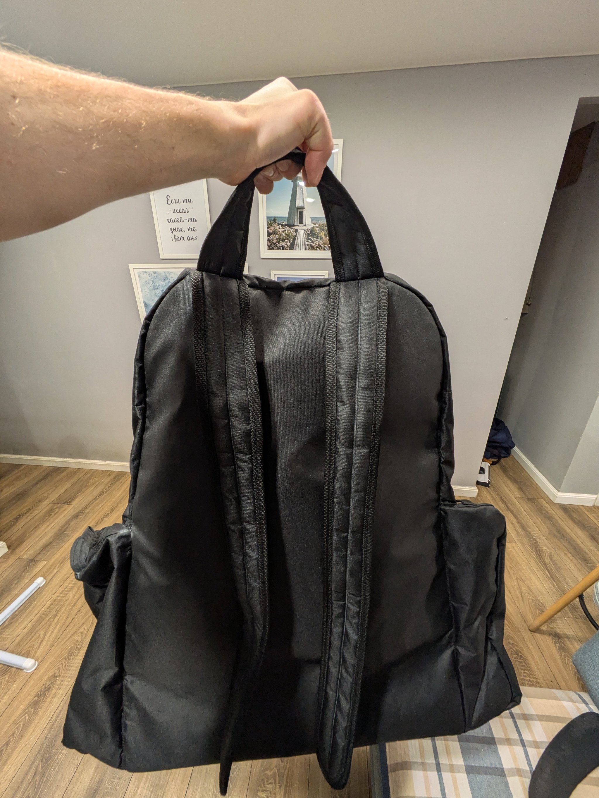 Далее застегнул молнию, закинул вещи в рюкзак, закрепил низ на зажимчики, накинул на плечи и как пооооонял... Спинка довольно мягкая, лицевой и центральной части тоже не хватает жёсткости..а это уже проблемка