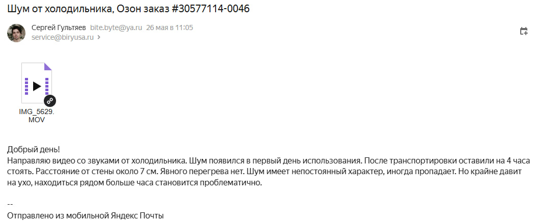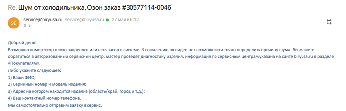 Вторым делом говорят: то что ответил производитель ерунда полная. Это их нормальная работа. Я прошу приехать и составить акт о том, что он работает в допуске по шуму. Через нехотя, но все таки заявку приняли. На этом моменте я приуныл.