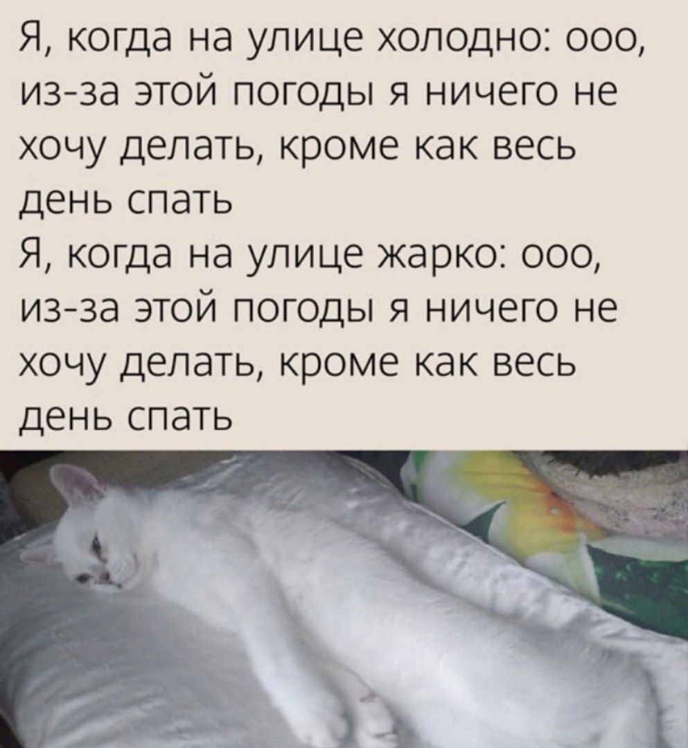 56 Byanastasiz Юмор для всех и каждого Холодно или жарко? 1 год назад Источник – тг «Совещание с тараканами» Картинка с текстом Юмор Кот Мемы Психолог Психология Жизненно Ожидание и реальность Усталость Возраст Внутренний диалог Грустный юмор Эмоциональное выгорание Тревога Telegram (ссылка) 2 Ещё 0