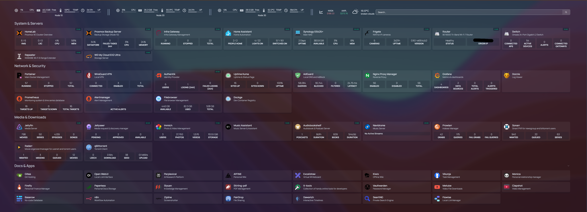 Решением стало выделение отдельной виртуалки (infra-gateway) для системных служб (Nginx Proxy Manager, Omada Controller, Authentik, AdGuard Home, Prometheus, Grafana, Alertmanager, Uptime Kuma, Dozzle Master и CrowdSec). Я повесил ее в режим High Availability state и это стало моим лучшим решением - никакие дальнейшие эксперименты в лабе не могли "сломать мне все". Пойдя дальше я разнес окружения контента и разработки тоже на отдельные машины, но об этом позже. В свое оправдание (да, люблю я оправдываться) могу сказать что про Single Point of Failure, сиречь единая точка отказа и про Blast Radius (радиус поражения) - я тогда не слышал и не задумывался. Хождение по граблям наше все.