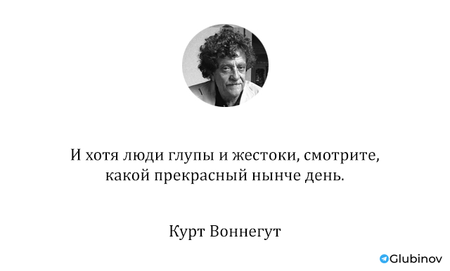 12 Glubinov 2 года назад Хорошая погода Цитаты Писатели Литература Жизнь Картинка с текстом Курт Воннегут 1 Ещё 0