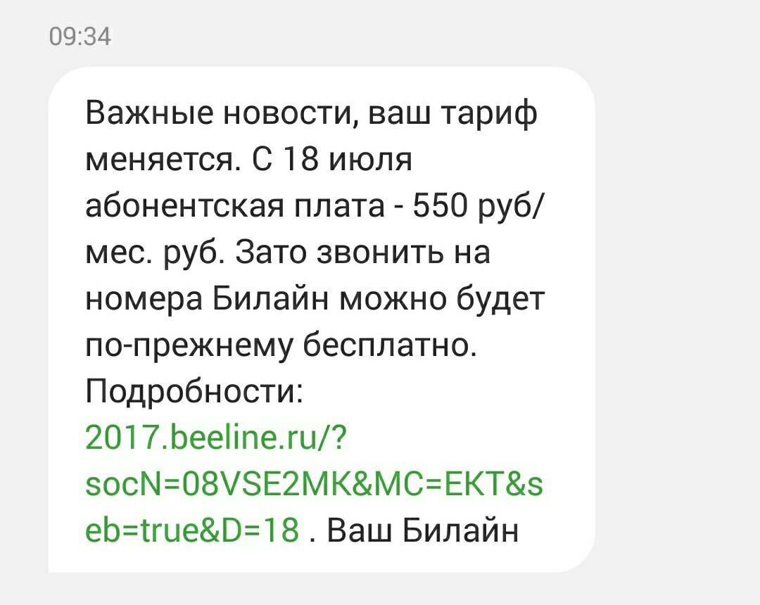 В марте подключился, клюнув на рекламу, на тариф 501. Потому что дешево. Теперь компания, перехватив свой % абонентов, решила, видимо, избавиться от них