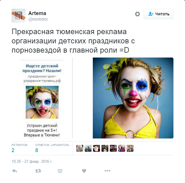 674 Небезопасный контент (18+) Авторизуйтесь или зарегистрируйтесь для просмотра QuaesitorNovi Хорошие праздники... И аниматоры интересные 9 лет назад пруф: https://tjournal.ru/23835-tumenskoe-agentstvo-detskih-prazdn... Порно Утренник