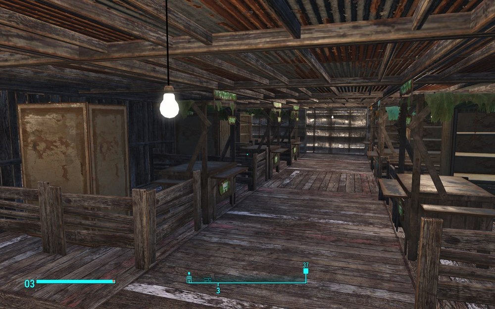 Да я вообще, обнёс сэнкшери стеной ( там очень удобно, стена из кустов с дырками, дырки стенами из мусора заделываешь = полная защита ) и сижу в здании, которое с подставкой для брони, напротив твоего довоенного дома. Там уютно, светло, мама Мёрфи на своём кресле всякие штуки рассказывает. А то что то страшновато, после того как половина мобов в новом фоле из ниоткуда лезет D:
