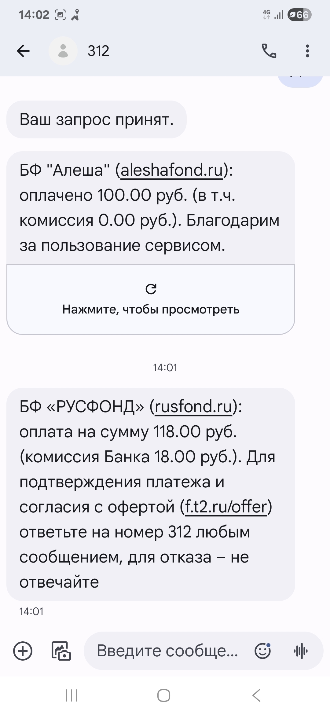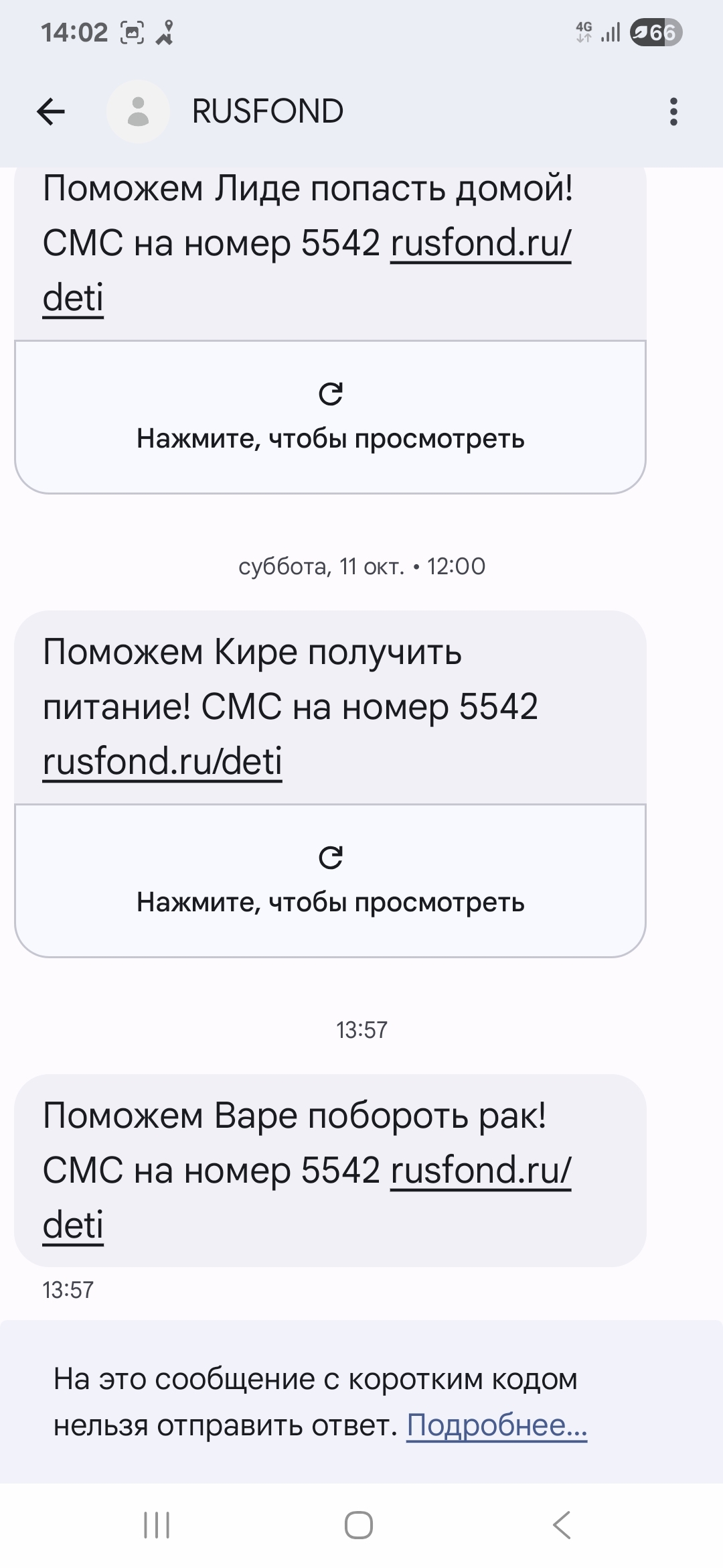 Приходит СМС от Русфонда с просьбой помочь ребёнку.
