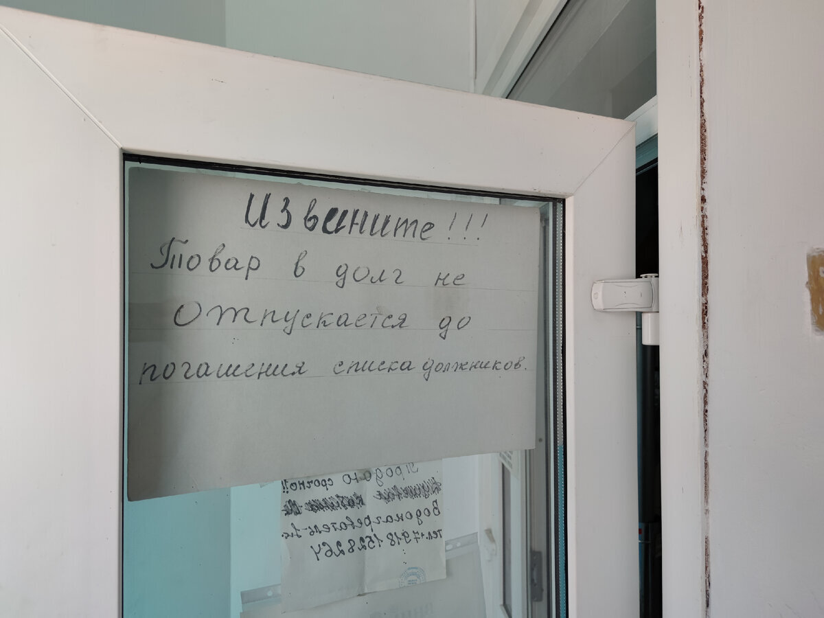 Магазин располагался в старом здании, при в ходе висит объявление, в котором говорилось что товар в долг не отпускают, причину тому указали ниже. :) Это кстати нормальная практика, у нас в частных продуктовых магазинчиках дают продукты в долг. У продавцов есть тетрадка, и у каждого постоянного покупателя есть отдельная страничка с номером. Даже у меня такая имеется 😁 но не потому что у меня проблема с деньгами, а потому что пару раз забывал бумажник дома и приходилось записываться в долг!