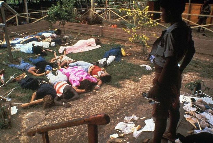 Узнав об этом Джонс решил приблизить приход Небесного Царства. 18 ноября 1978 г., когда на аэродроме Порт-Кайтума приземлился самолет конгрессмена Райана, сектантские боевики встретили его выстрелами. 5 человек было убито. Когда весть об этом дошла до лагеря, Джонс приказал всем принять яд. Сначала отравили детей, дав им лимонад с цианидом, затем яд приняли взрослые. Пытавшимся бежать стреляли в спину. В итоге более 900 человек, включая самого Джонса, погибли. Так трагически завершилась история "Народного храма".