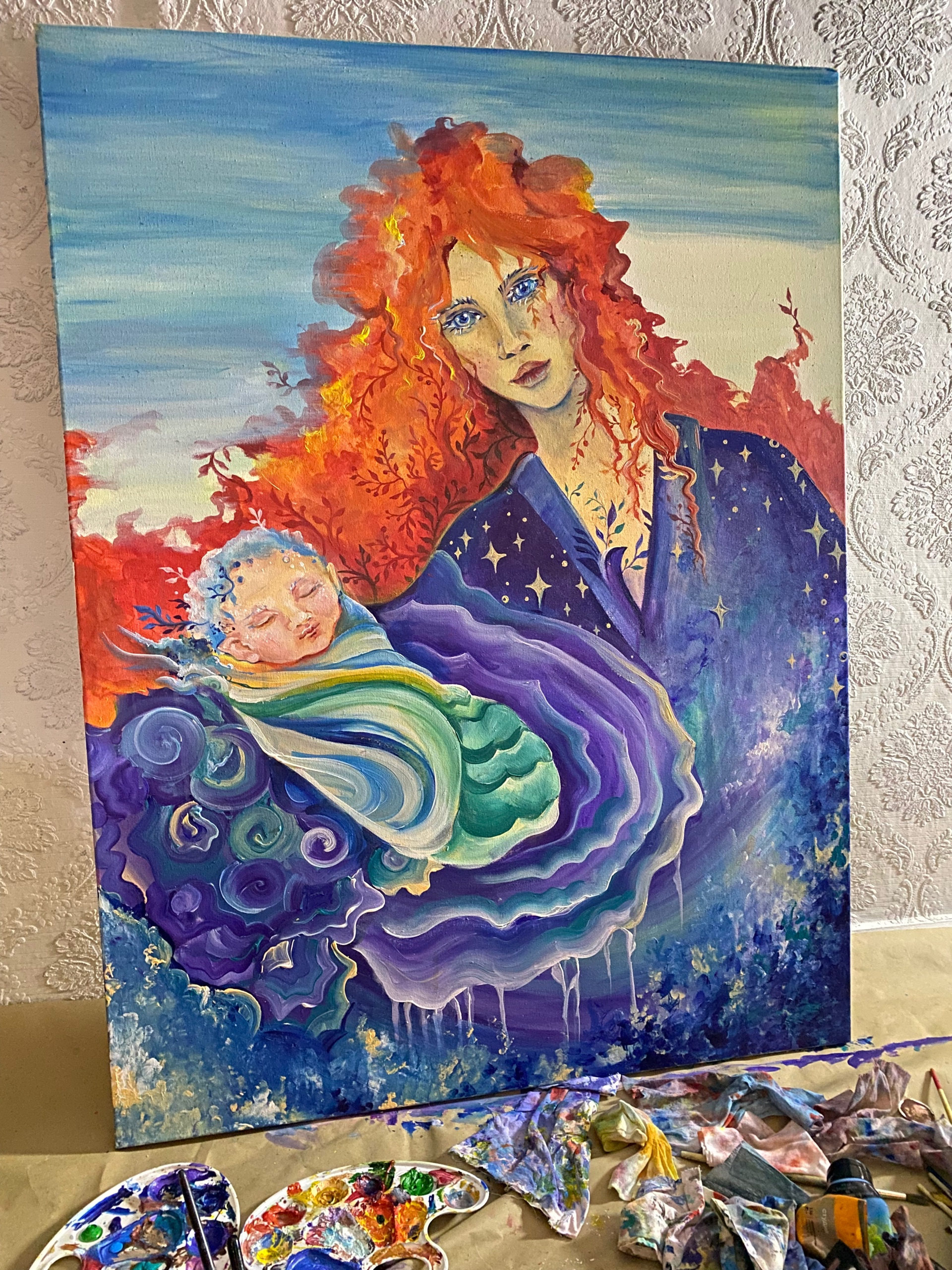 для всех любителей покричать это «нейросеть» это кусок творческого процесса с недописанной картиной моим бардаком и плохим светом