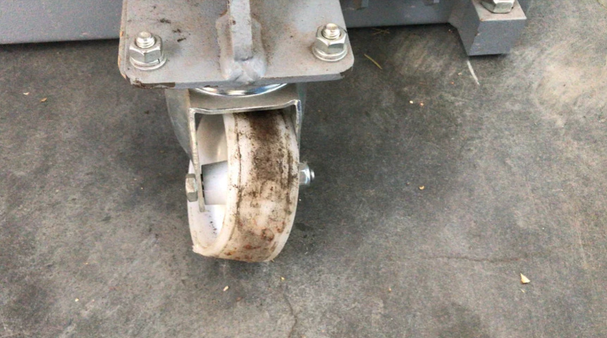 Колёса достаточной грузоподъёмности, но вот не выдержала его полиамидная душа общения с пьяными саратовскими такелажниками. Ступица оторвалась от обода. Катить даже в пустом виде - невозможно. А надо-то всего - один раз у конечного покупателя - поставить рядом со станком, подкатить под станок, поднять на опорах и всё. Колесо больше и не понадобится никогда.
