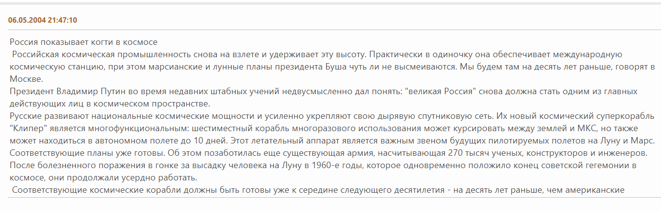 История "Клипера" напоминает историю "Летучего Голландца": все, кто знаком с российской космонавтикой, когда-либо о нем слышали, но не видел почти никто - включая и посетителей двух последних международных выставок, куда съездил только макет в масштабе один к пяти