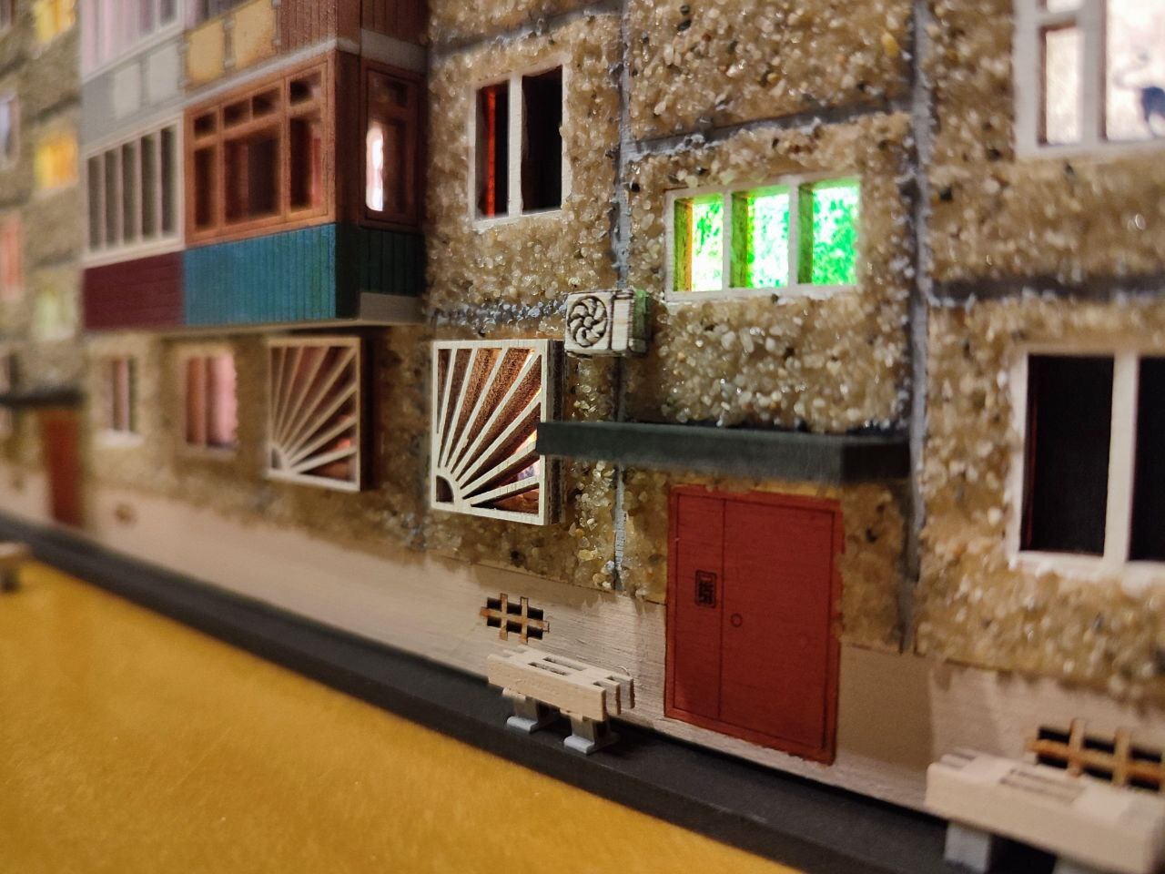 Резинок понадобилось прилично. Крышу, когда отдельно её клеил, слегка увело по краям. Поэтому стягивал большим количеством. Вполне себе выпрямило.