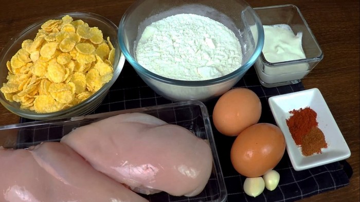 Секрет хрустящей панировки - кукурузные хлопьях для завтраков.