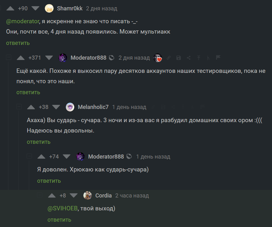 0 aiditz 3 года назад Хрюкнул как сударь @Melanholic7 @Cordia #comment_226672847 Комментарии на Пикабу Модератор Тестировщики Ещё 0