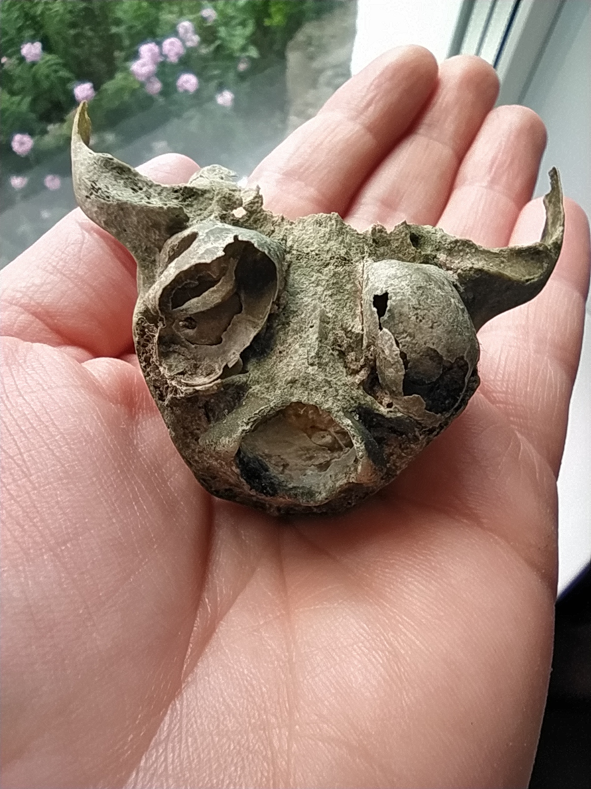 Думали, что это череп, а сейчас смотрю - может это с филейной стороны как-то крепится?))