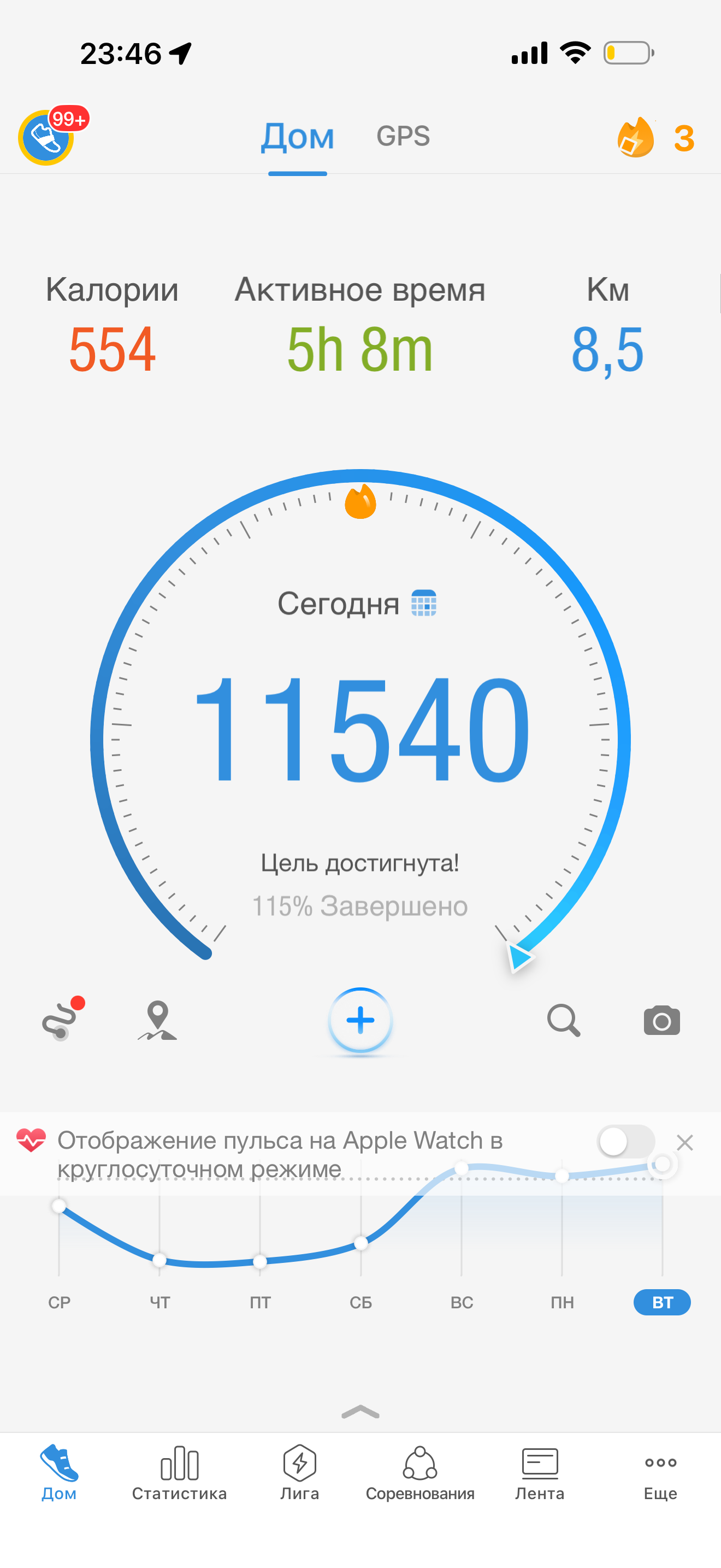 По шагам уже три дня выполняю норму в 10000 шагов и даже иногда больше получается,вот как сегодня