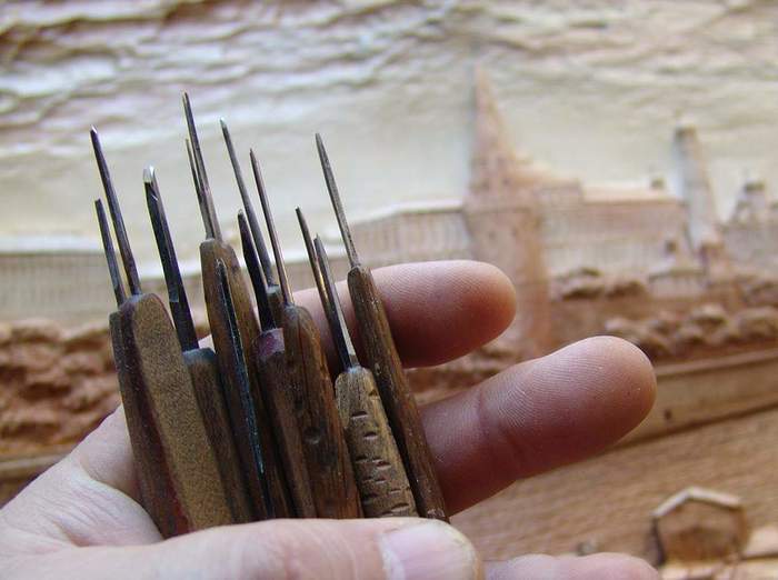 В резьбе картин наша мастерская использует более 200 резцов, около 30% это покупной инструмент, таких производителей как