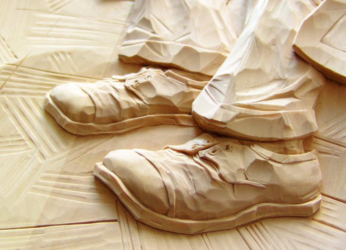 Структура липы идеально подходит для резьбы картин, движения не скованны, в результате можно передать свободу движения руки. Во всех плюсах мягкого материала есть одно правило, это острый хорошо заточенный инструмент, от которого стружка шуршит приятным звуком, иначе, при не верно заточенном инструменте или попросту тупым, резьба получается мятая, рваная.