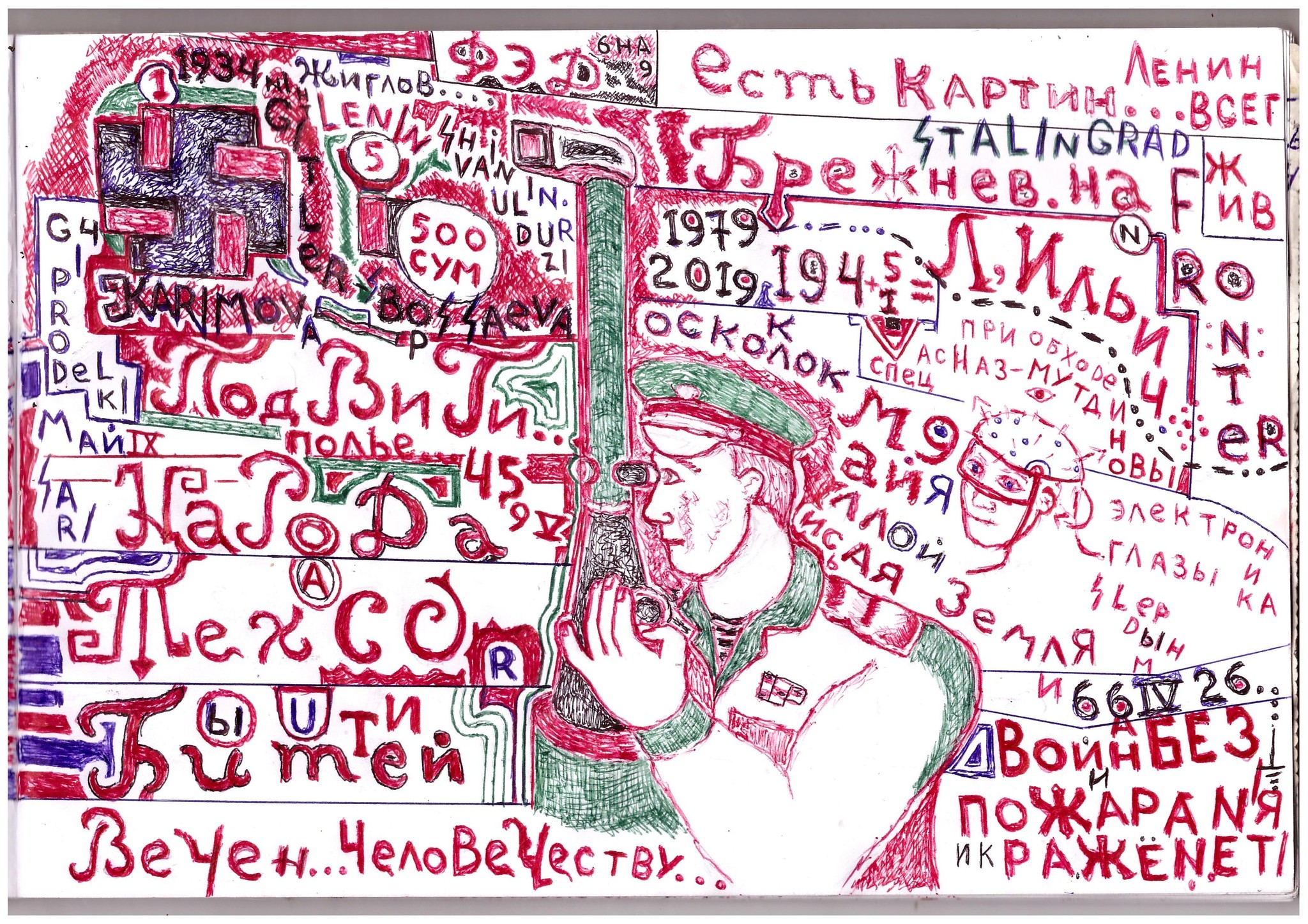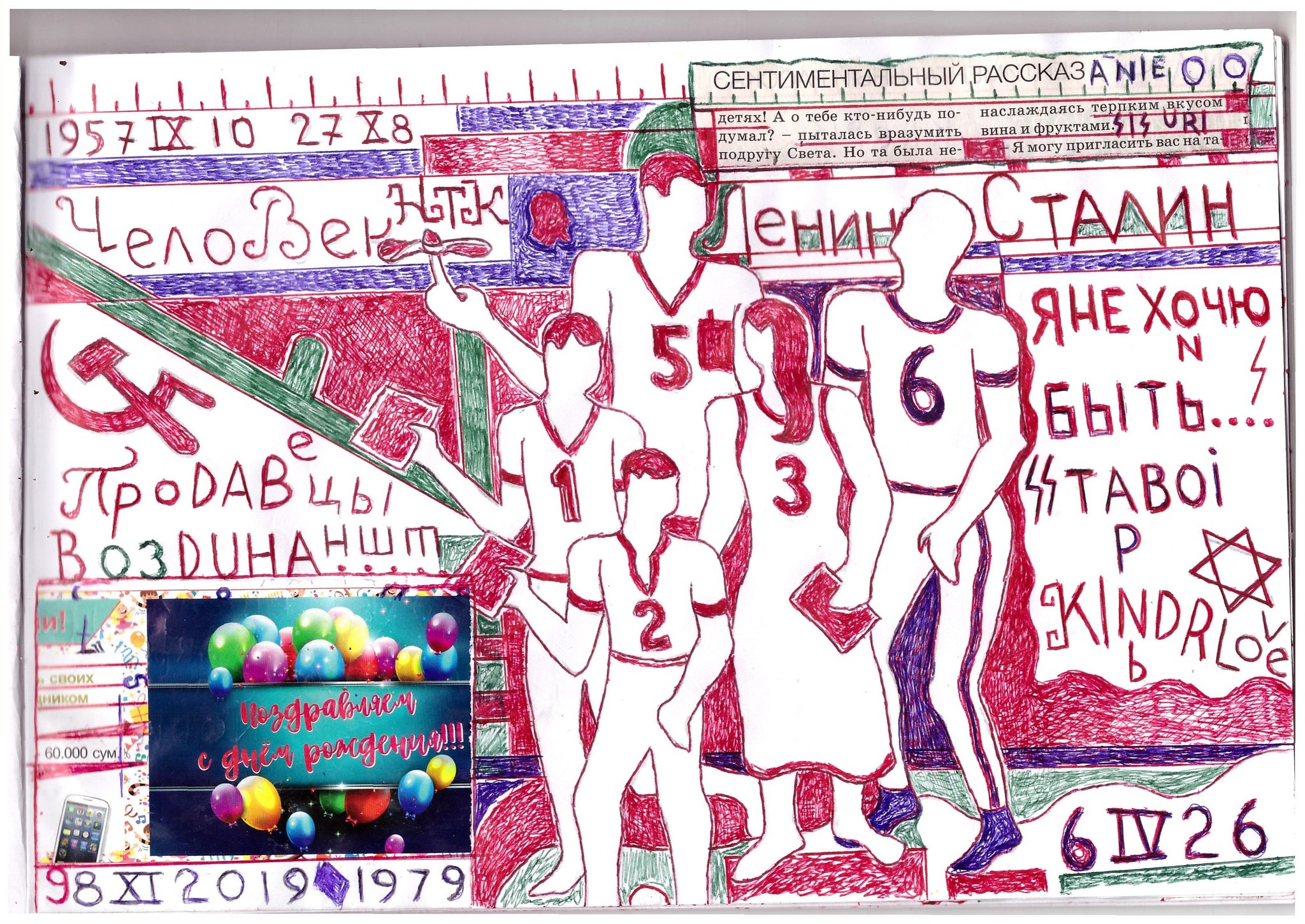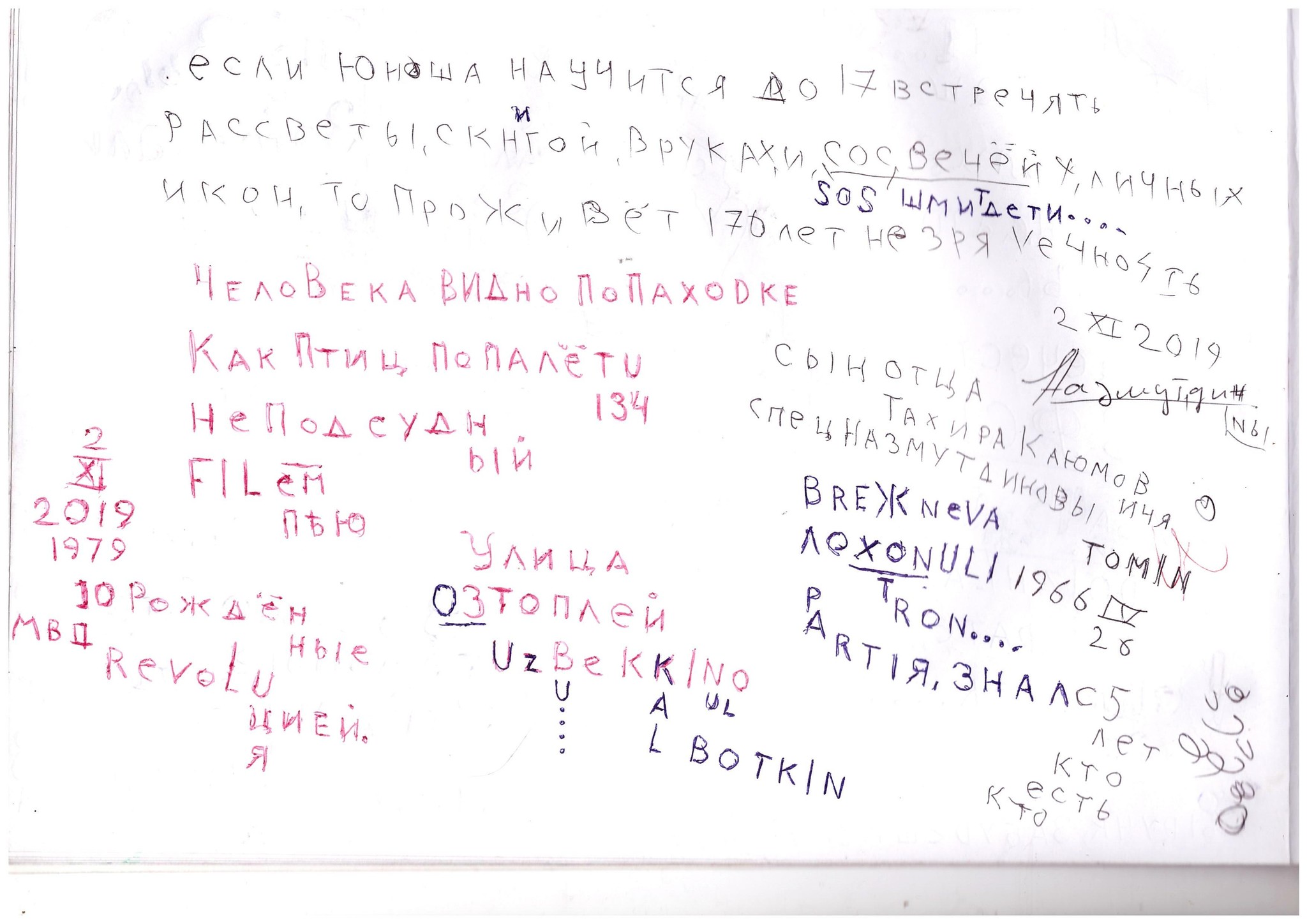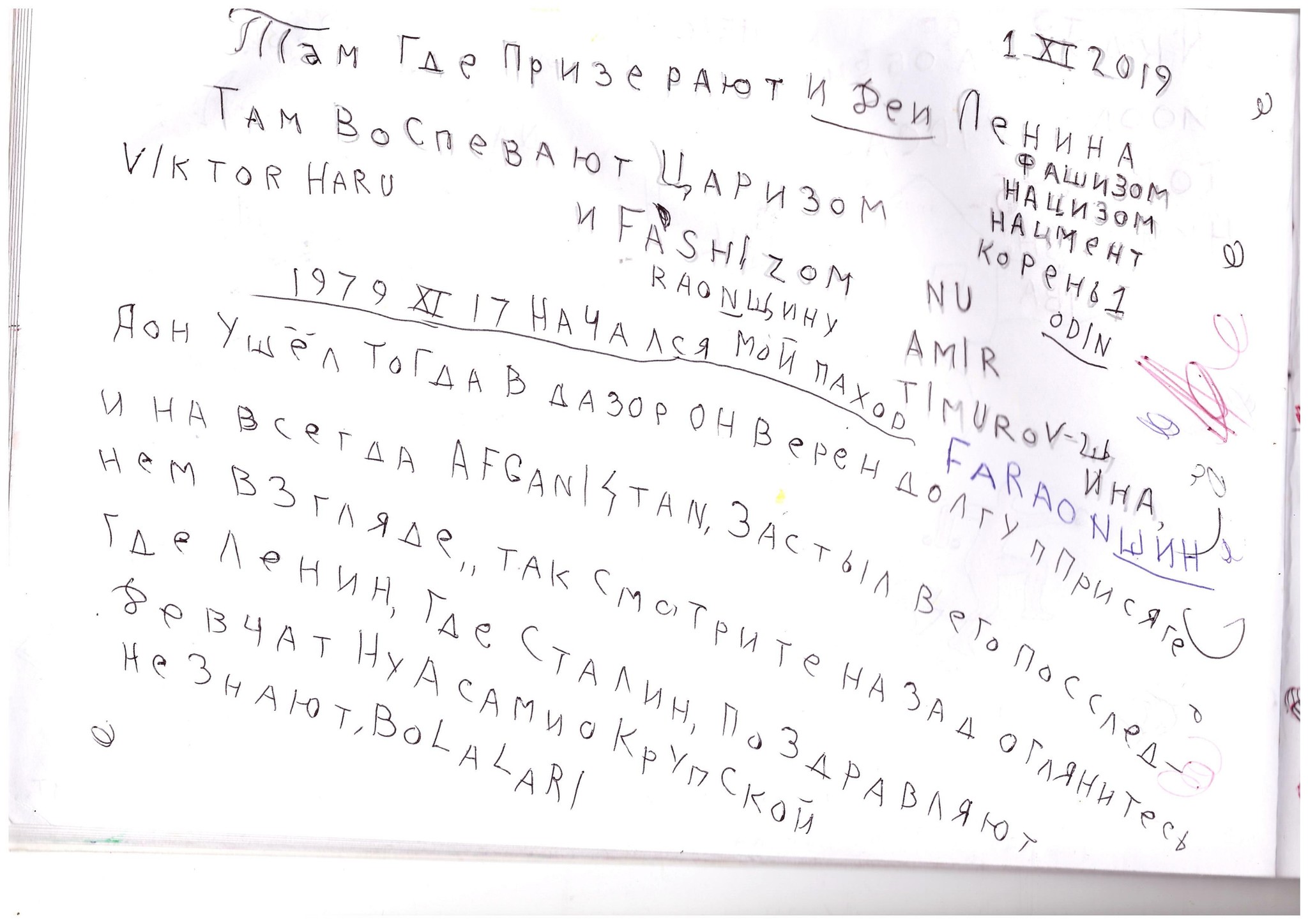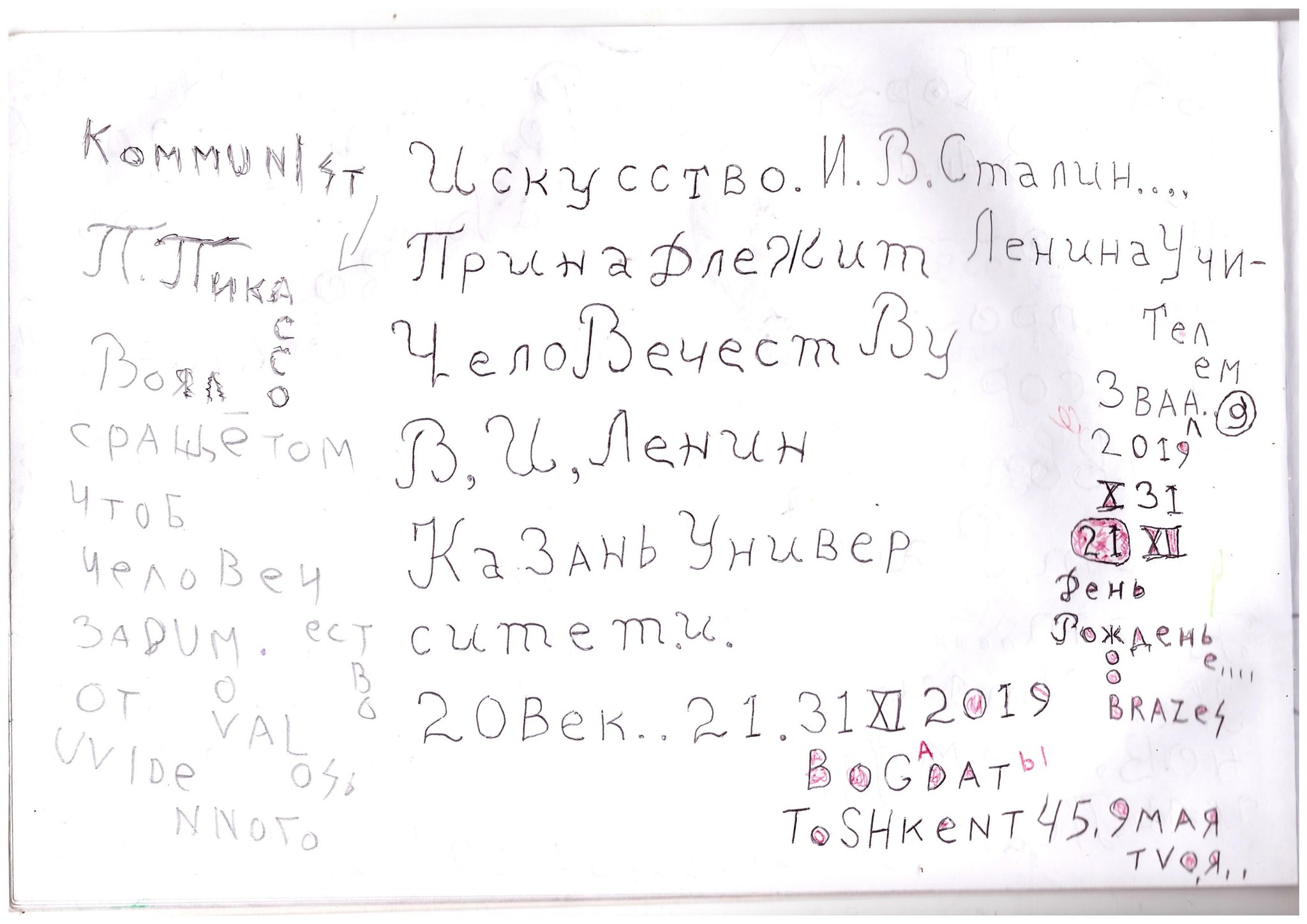 Смесь кириллицы, латиницы, символов и узбекского языка - не пугайтесь. Направление написания надписи/слова также изменяется спонтанно.