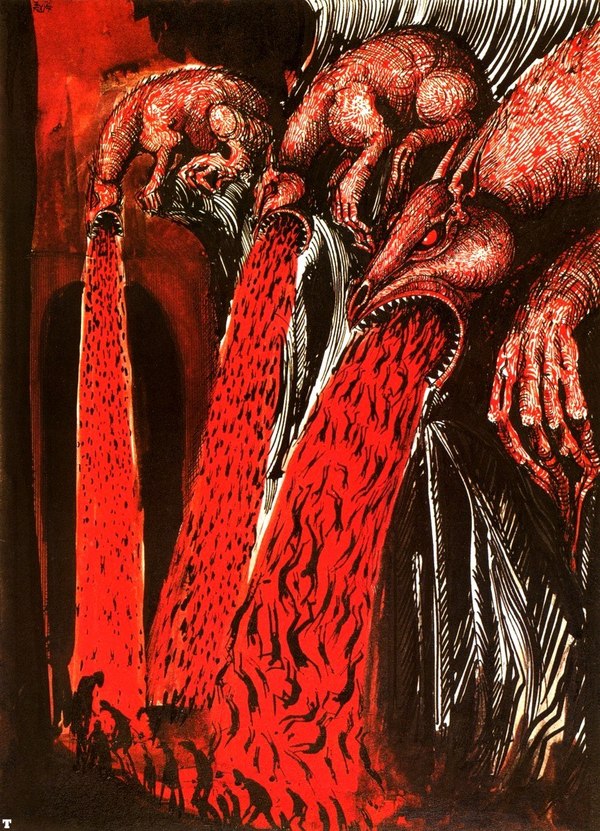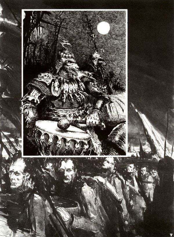 Как обычно. Извините за перевод нечитабельный и отсутствие каких-либо знаков препинания. Я уже почти хотел купить учебник русского языка, но тут рядом увидел ларёк с пирожками. Ну вы поняли. Что касается Яна, то он мего крут. Вместе с Бланше они заложили фундамент для всея Вархаммера. По крайней мере касательного визуальной составляющей сеттинга. Кстати. Есть книга с их иллюстрациями "Ratspike". Бланше и Миллера. Рекомендую. Забавно, но Миллер приложил руку к созданию Шрека. Кто бы мог подумать.