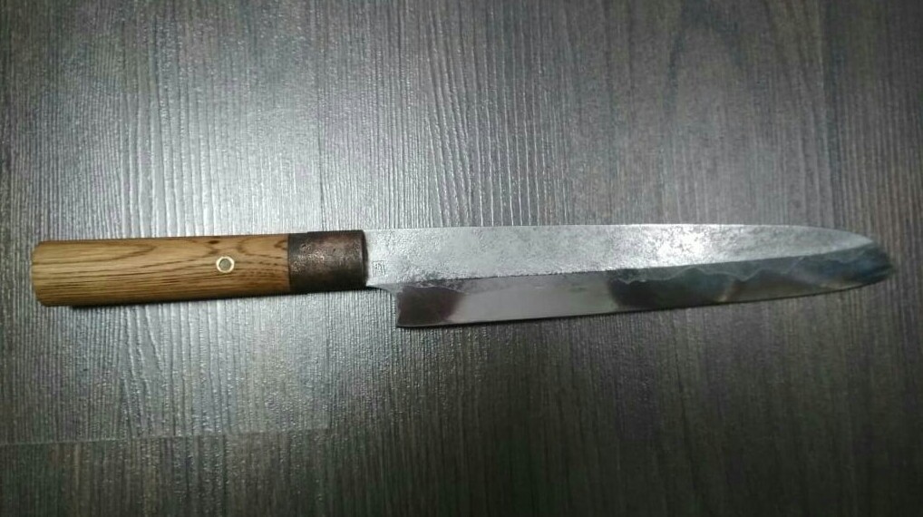 Это нож для тонкого нарезания рыбы. Традиционная японская форма янаги ба.
