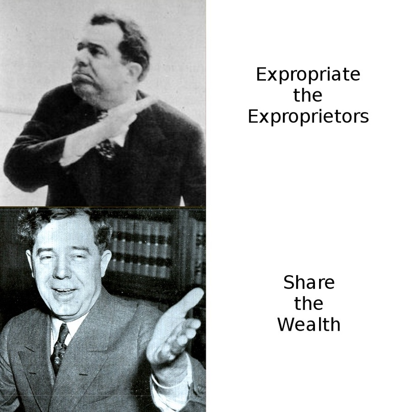 И, если честно, этот святоша был гораздо, гораздо ближе к фашизму, чем Лонг: Кофлин открыто позиционировал себя, как сторонника корпоративизма (справедливости ради, не в классическом его понимании сращивания крупного капитала и государства — Кофлин выступал как против эгоцентрических проявлений капитализма, так и против коммунизма). Впрочем, не все так однозначно, так как Кофлин также за свободу совести, расширение прав профсоюзов и защиту прав рабочих, а также выступал против деятельности ККК (последние даже пообещали наказать отца Кофлина за его речи, чего, впрочем, не последовало).