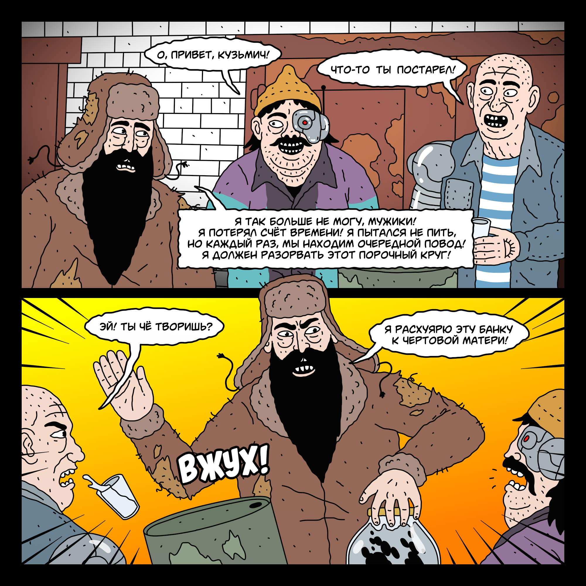 6564 cyberdyansk Кибердянск. Киберпанковые комиксы о российской глубинке Юмор Кибердянск #53 Друзья из гаражного кооператива 2 года назад [моё] Киберпанк Кибердянск Комиксы Авторский комикс Юмор Гараж Алкоголь Длиннопост Кротовуха Мат 49 84 10 10 7 1 Ещё 0
