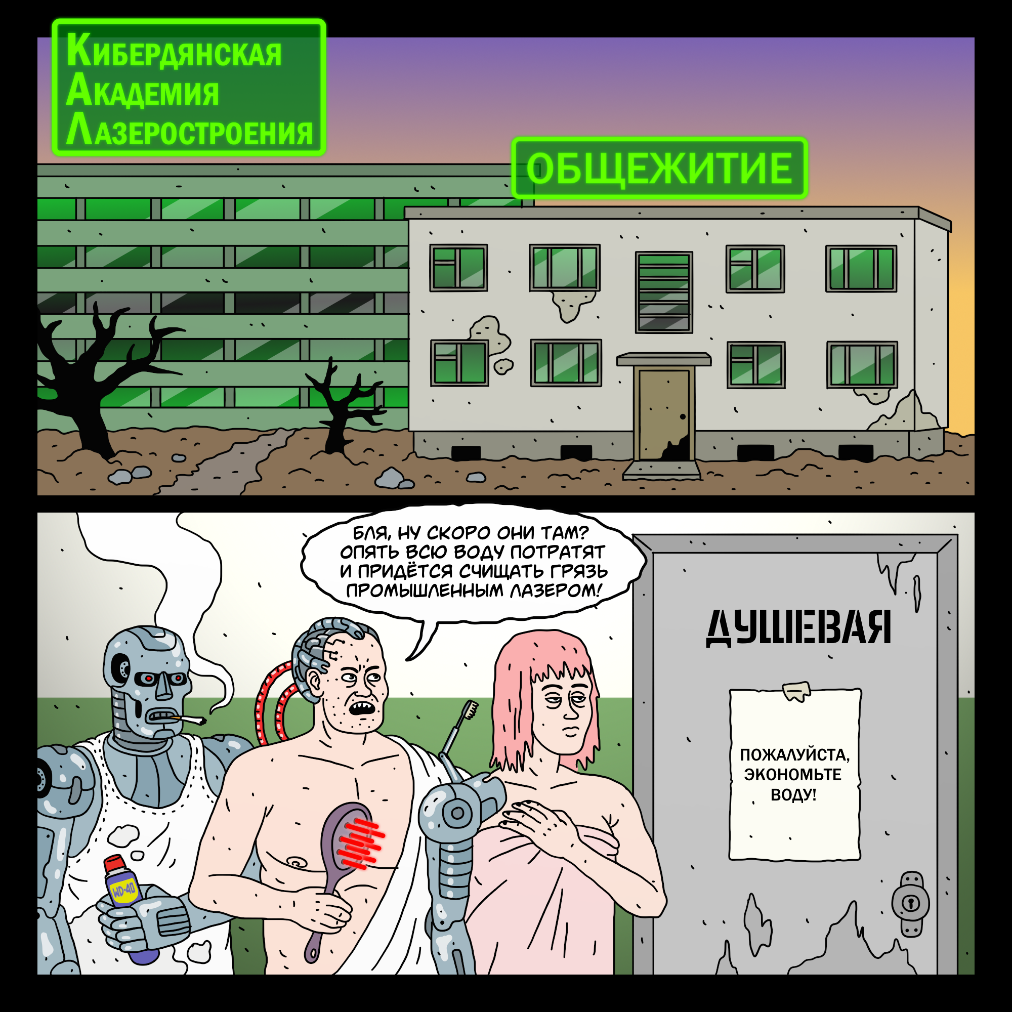 1693 cyberdyansk Кибердянск. Киберпанковые комиксы о российской глубинке Кибердянск #90 Общажный душ 8 месяцев назад [моё] Юмор Комиксы Авторский комикс Киберпанк Кибердянск Общежитие Студенты Длиннопост Мат 54 6 3 2 2 Ещё 0